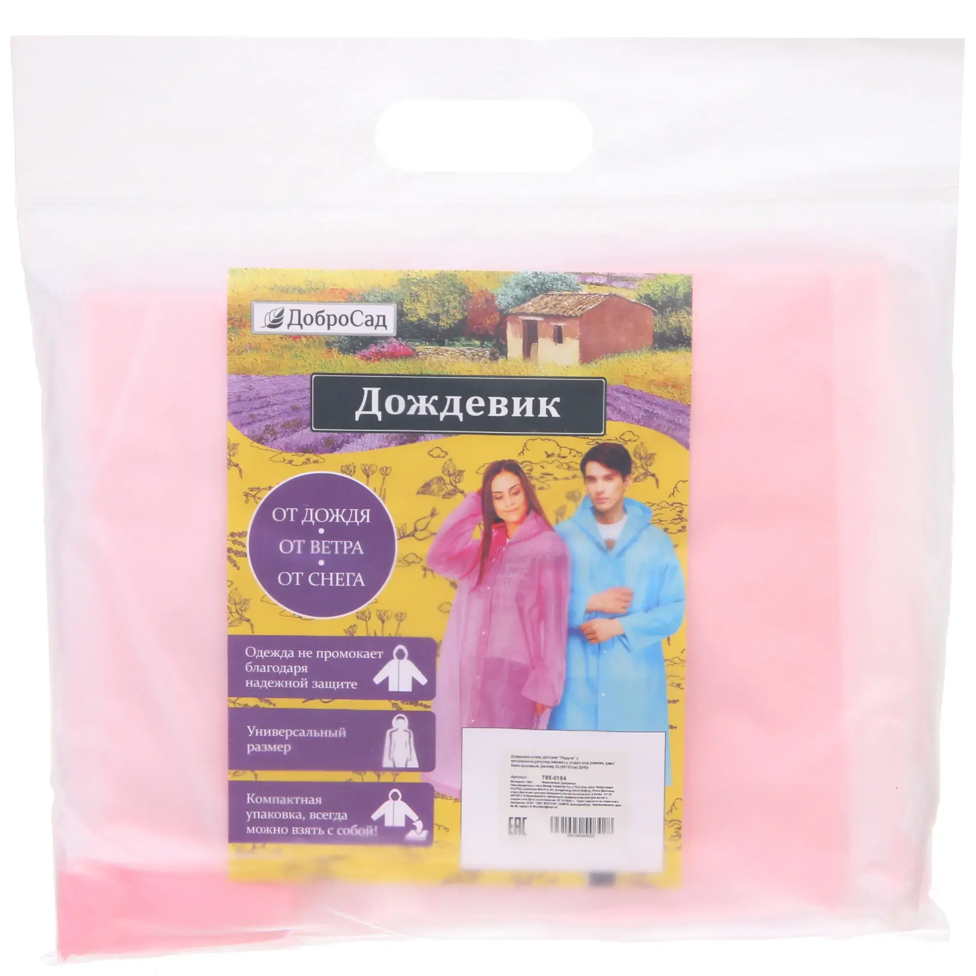 - Компактная упаковка позволяет всегда носить дождевик с собой