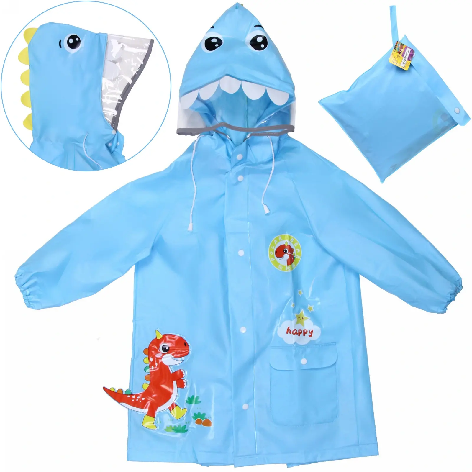 Выбирая дождевик «Рокки-Динозаврик», вы получаете не только стильный, но и практичный аксессуар для вашего ребенка. Яркий дизайн с изображением динозавра и надписью «happy» делает его привлекательным для детей, а водоотталкивающие свойства материала гарантируют, что одежда останется сухой даже в сильный дождь. Дождевик станет незаменимым элементом гардероба для прогулок, походов и игр на свежем воздухе.
