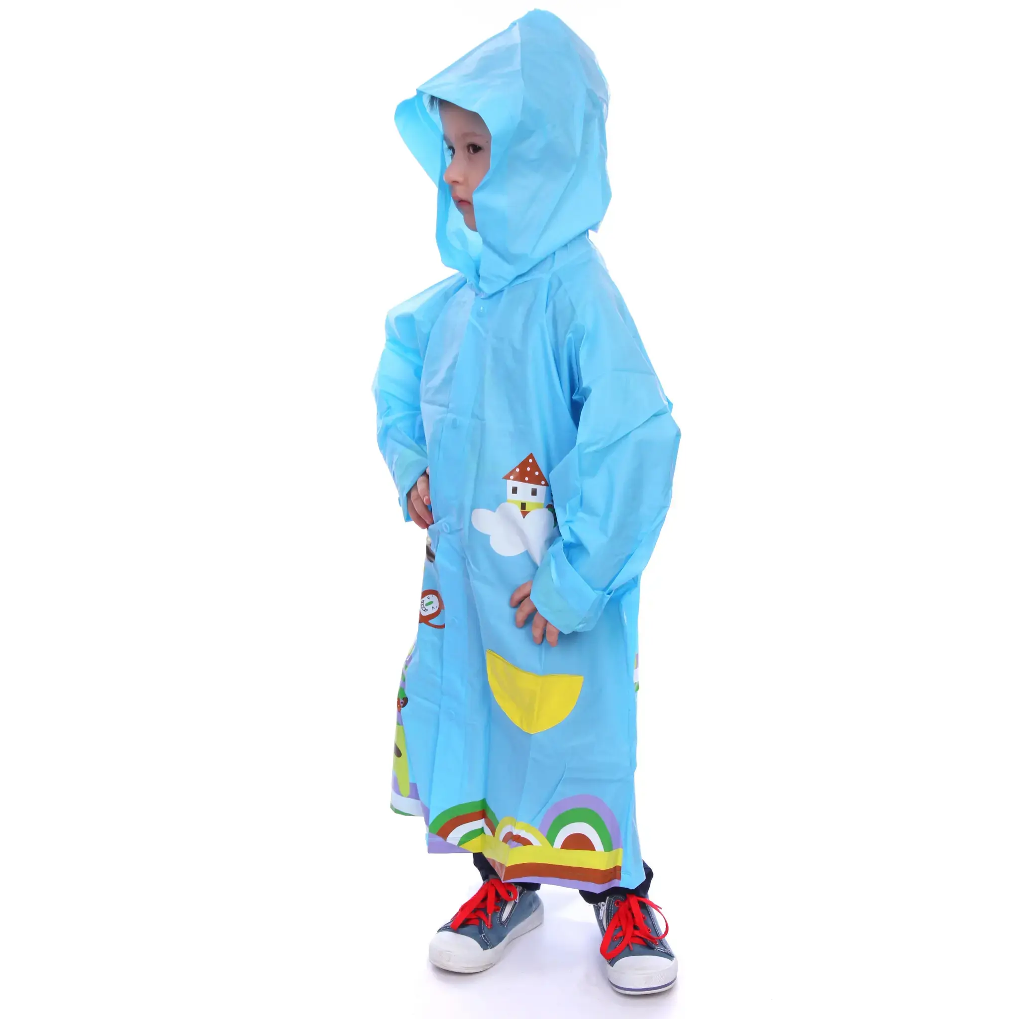 Дождевик оснащен удобным капюшоном с завязками для регулировки, что позволяет ребенку чувствовать себя комфортно и защищенным. Кнопки на плаще обеспечивают легкое и быстрое надевание и снятие, а также позволяют регулировать размер в зависимости от роста ребенка. Дождевик идеально подходит для прогулок, походов и игр на свежем воздухе, а также поможет сохранить хорошее настроение в дождливую погоду.