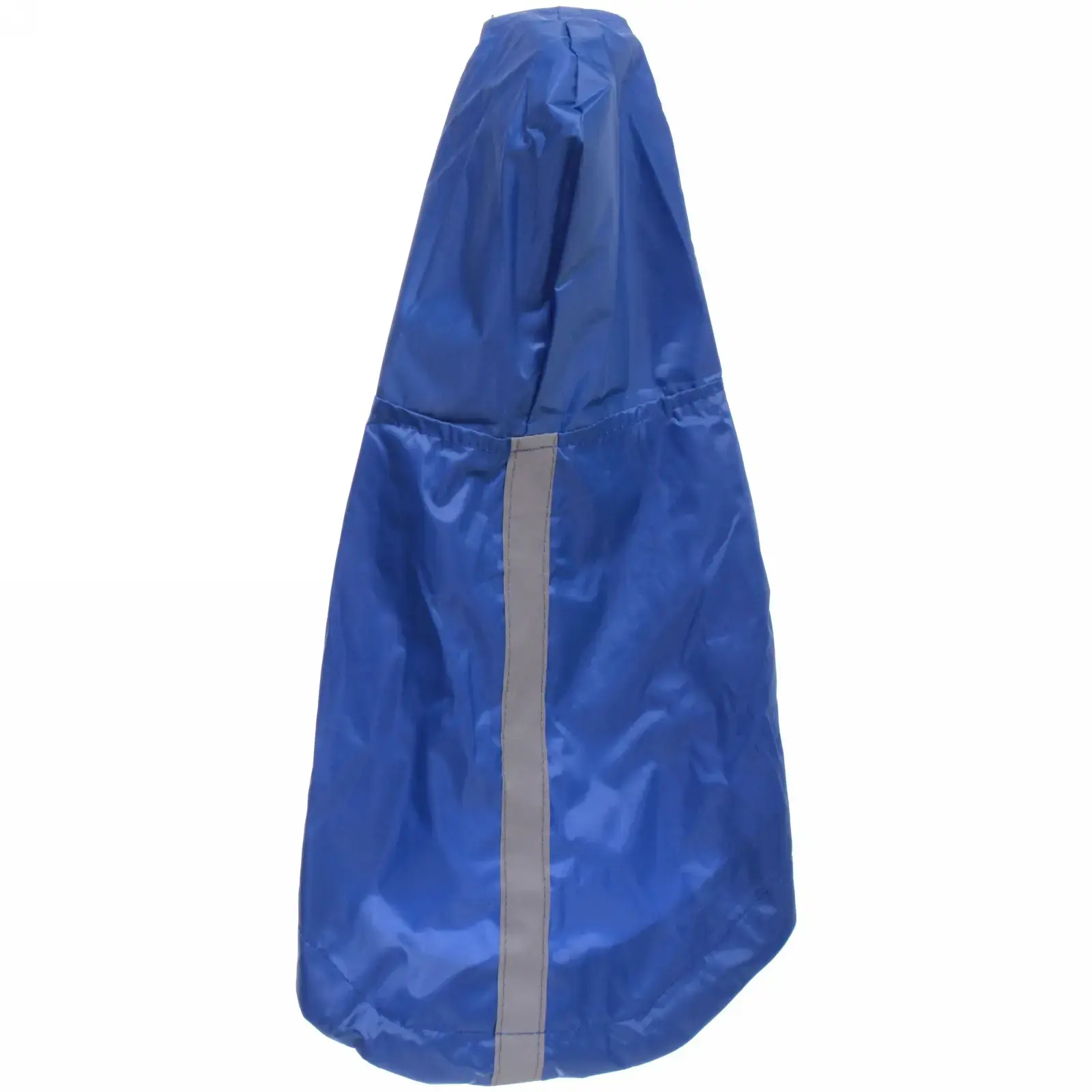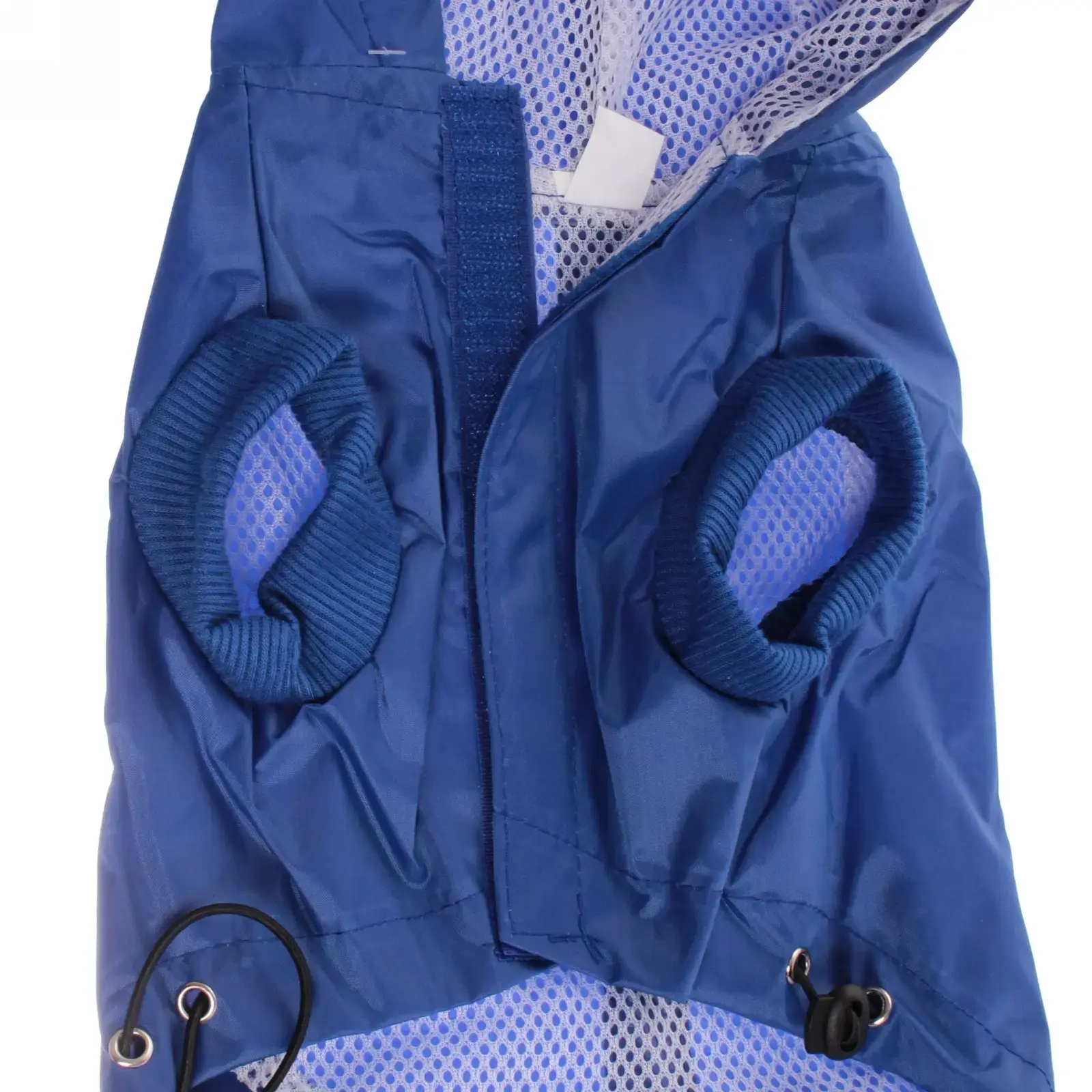 Дождевик-плащ предназначен для собак среднего размера, подходит для обхвата шеи 34 см и обхвата груди 50 см. Он легко надевается и снимается благодаря удобным застежкам и регулируемым элементам. Капюшон с сетчатой подкладкой обеспечивает дополнительный комфорт и защиту от непогоды, а светоотражающие полосы по бокам обеспечивают безопасность в темное время суток.