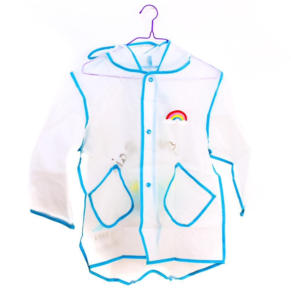 Детский дождевик с капюшоном, разноцветный принт, размер M, радуга, непромокаемые карманы