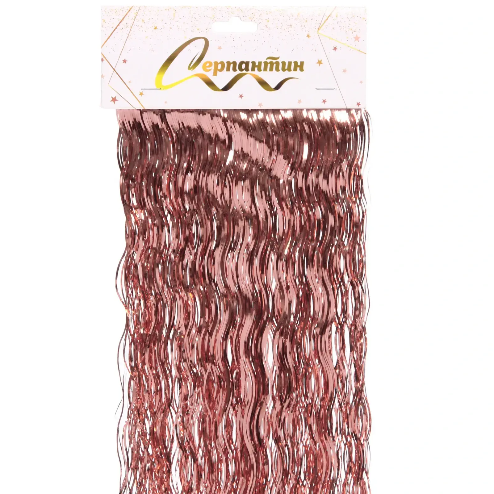 Этот изысканный серпантин станет ярким акцентом на любом торжестве. Его волнистая форма и мерцающий оттенок розового золота создают неповторимую атмосферу праздника.