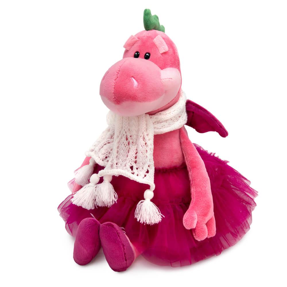 Мягкая игрушка дракон «Грува», 26 см, розовый, фиолетовая юбка, белый шарф, акрил