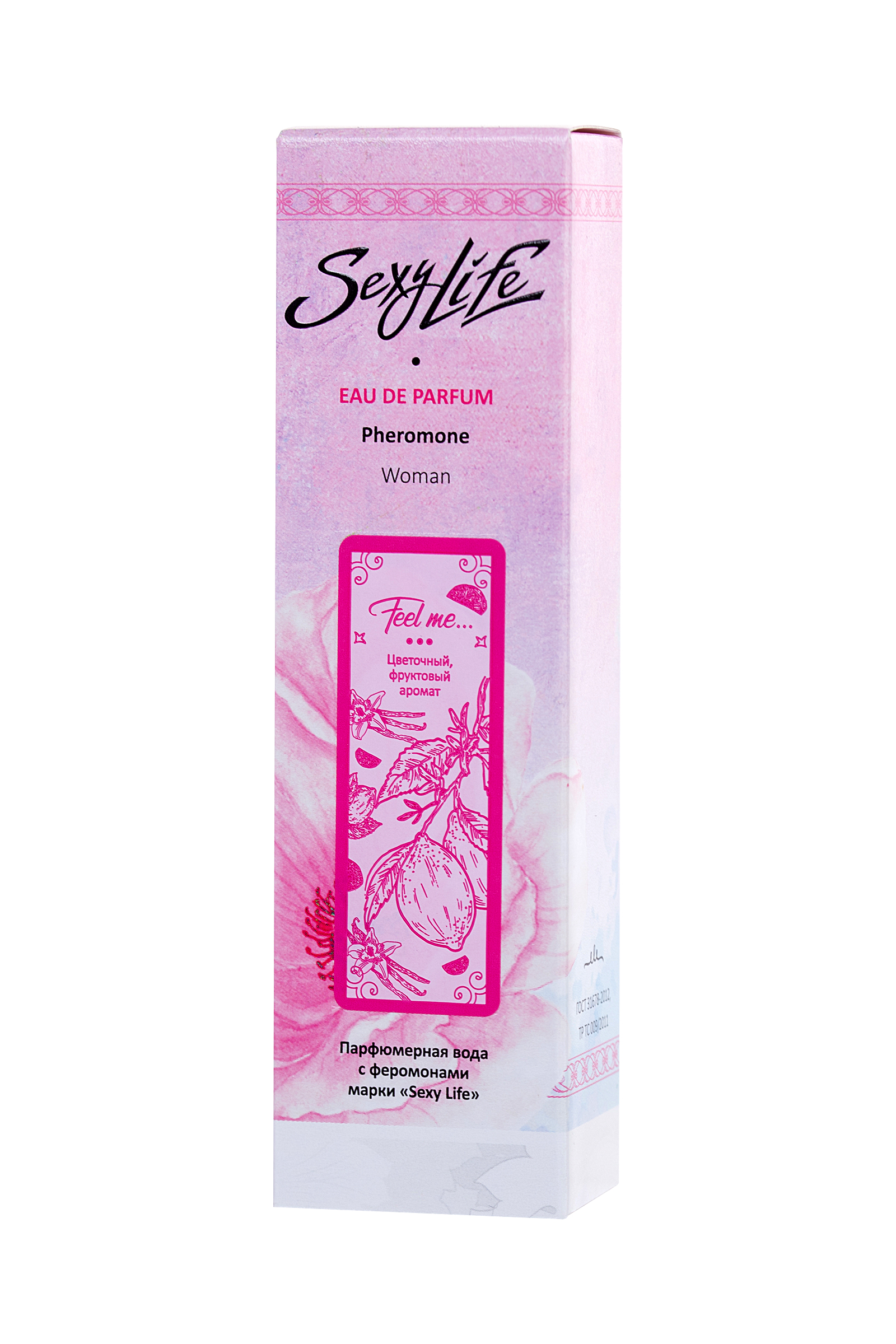 Парфюм с феромонами создан для тех, кто ценит внимание и хочет подчеркнуть свою природную женственность. Цветочно-фруктовая композиция раскрывается подобно танцу: начинается с солнечных нот мандарина и лимона, переходит к нежному букету розы и фрезии, а завершается чувственным шлейфом ванили и белого мускуса.