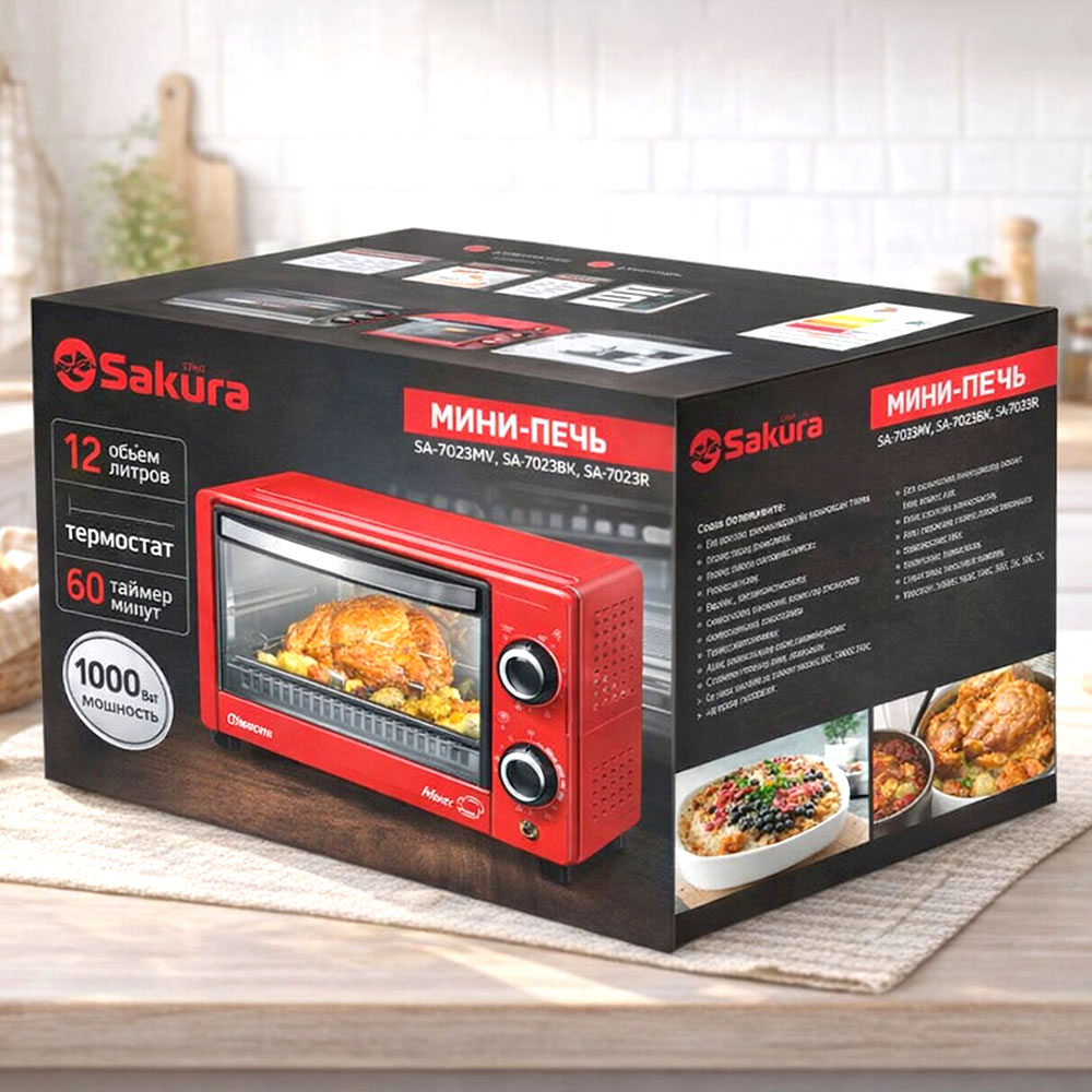Духовка электрическая 12л 1000Вт таймер, SA-7023W