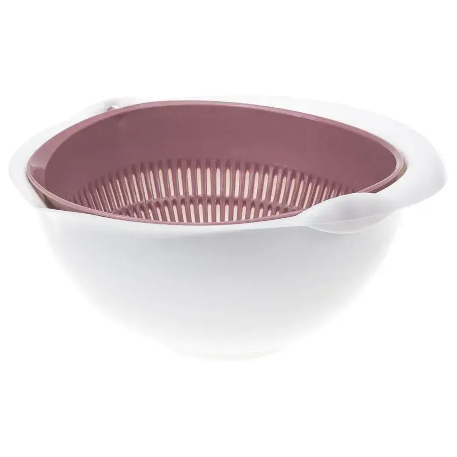 Дуршлаг имеет продуманную конструкцию с внутренним дренажным элементом, который эффективно отцеживает воду. Прочный пластик выдерживает многократное использование и не деформируется со временем.
