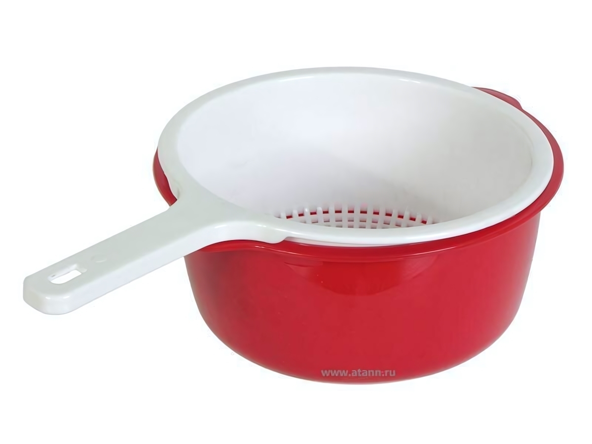 Дуршлаг двойной d=19 см, пластик, красный/белый, удобная ручка