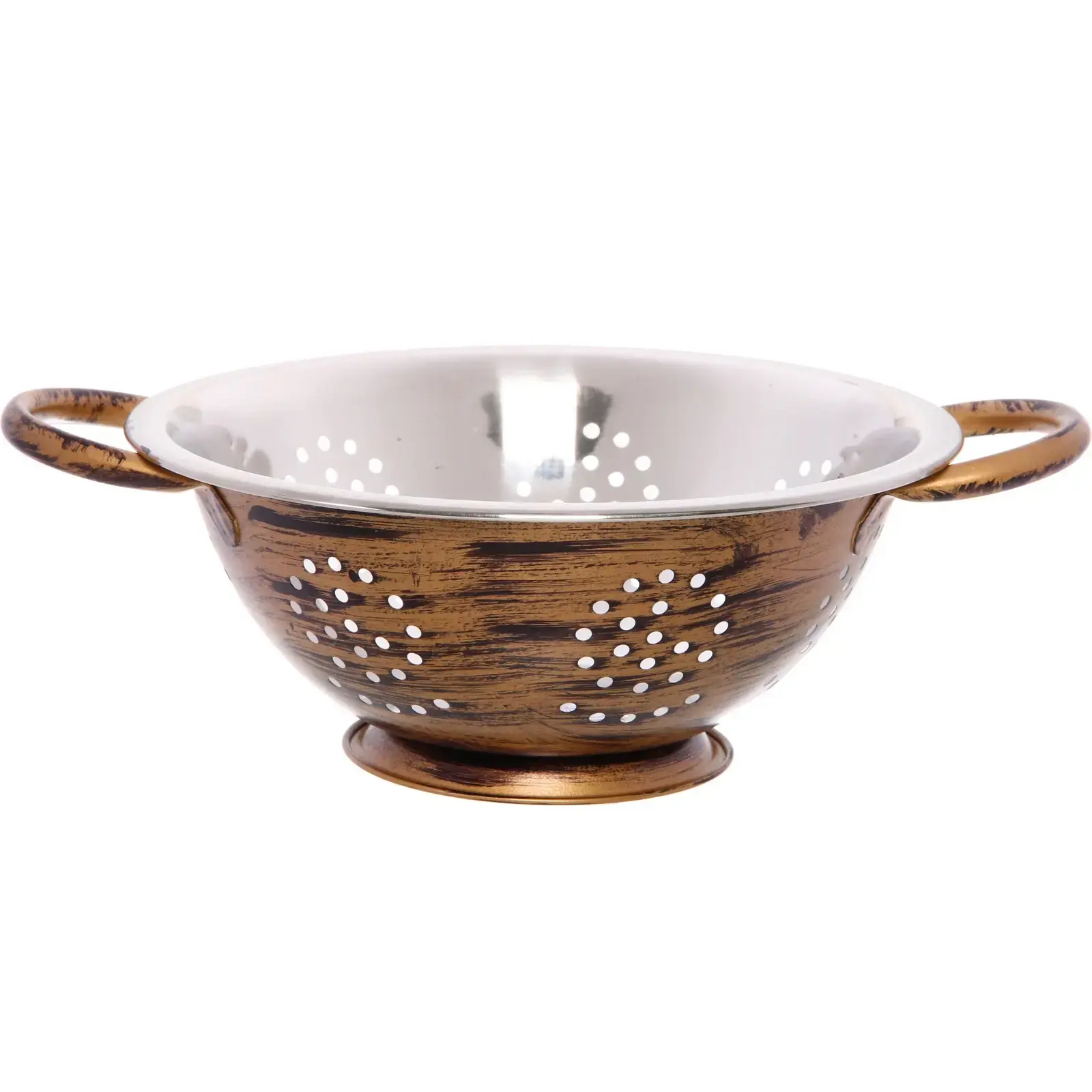 Дуршлаг имеет округлую форму и размер 22 см, что делает его идеальным для большинства кухонных задач. Он подходит как для домашнего использования, так и для профессиональных кухонь. С его помощью вы сможете быстро и эффективно промывать продукты, экономя время на приготовление. Его стильный цвет антик и текстурированная внешняя поверхность придают ему элегантный вид, который отлично впишется в любой интерьер.