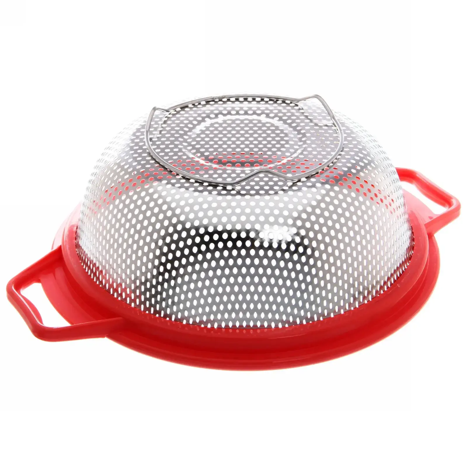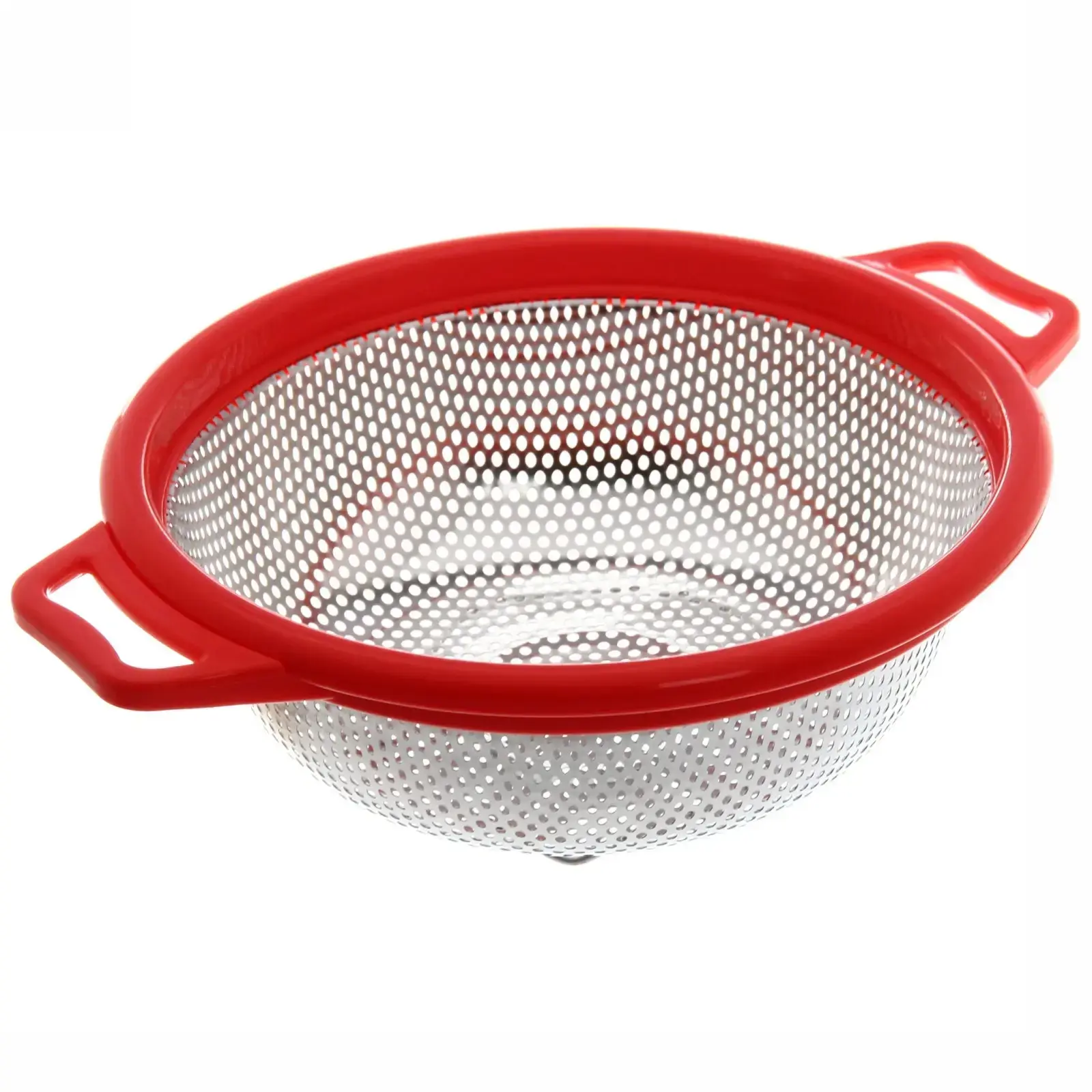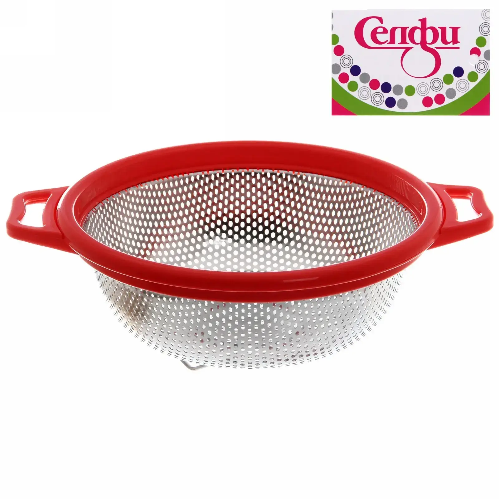 Этот дуршлаг станет незаменимым инструментом для процеживания и отцеживания жидкостей при приготовлении различных блюд. Его удобная форма и практичный дизайн обеспечивают комфортное использование, а красная окантовка добавляет яркий акцент на вашей кухне.