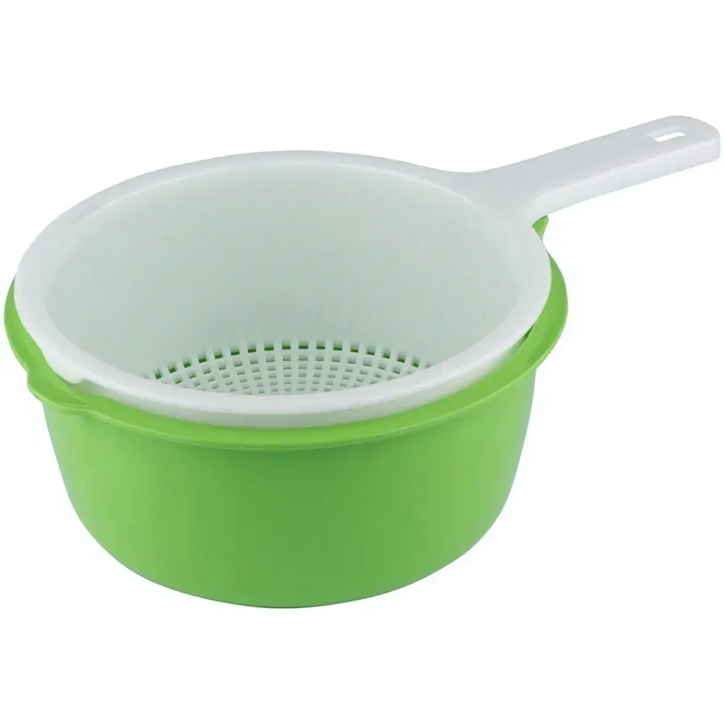 Купить пластиковый двойной дуршлаг стоит не только из-за его практичности, но и благодаря экономии пространства. Чаша меньшего дуршлага помещается в большую, что позволяет хранить его компактно и удобно. Этот дуршлаг легко моется, не портится от моющих средств и сохраняет свой первоначальный вид даже после многократного использования.