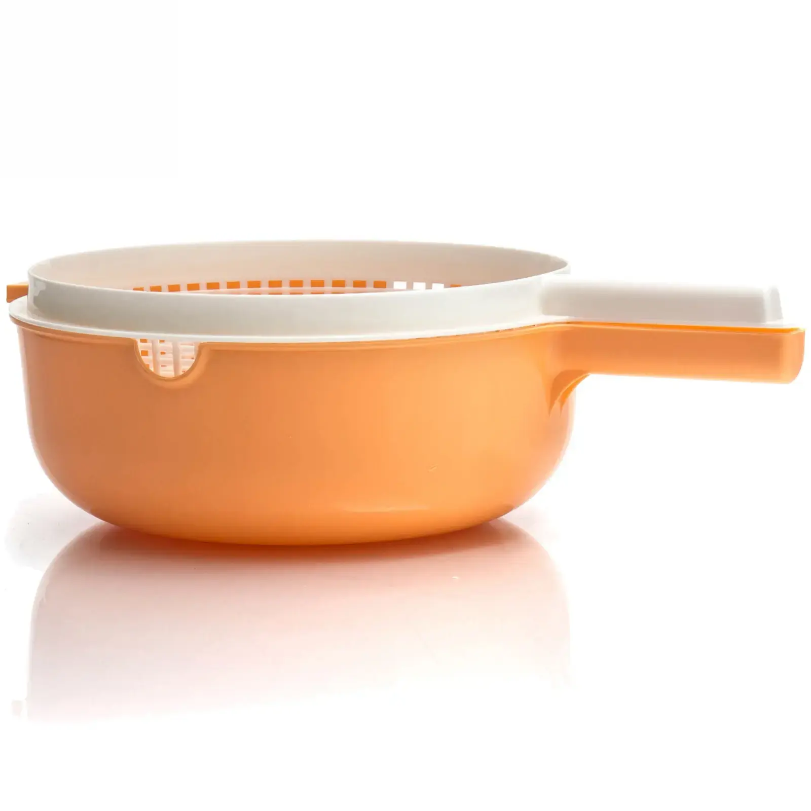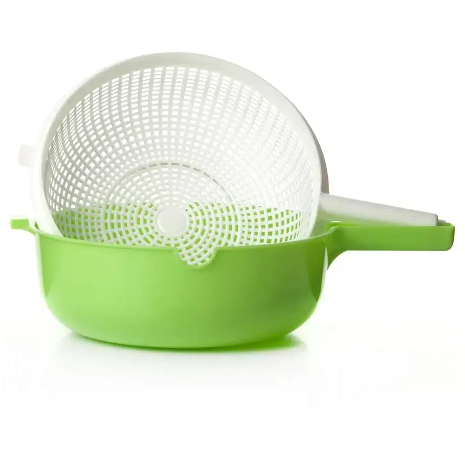 Выбирая этот дуршлаг, вы получаете не только практичное решение для слива жидкости, но и экономию пространства. Чаша меньшего дуршлага помещается в больший, что позволяет хранить его компактно. Кроме того, его стильный дизайн и яркие цвета добавят нотку свежести в вашу кухонную утварь.