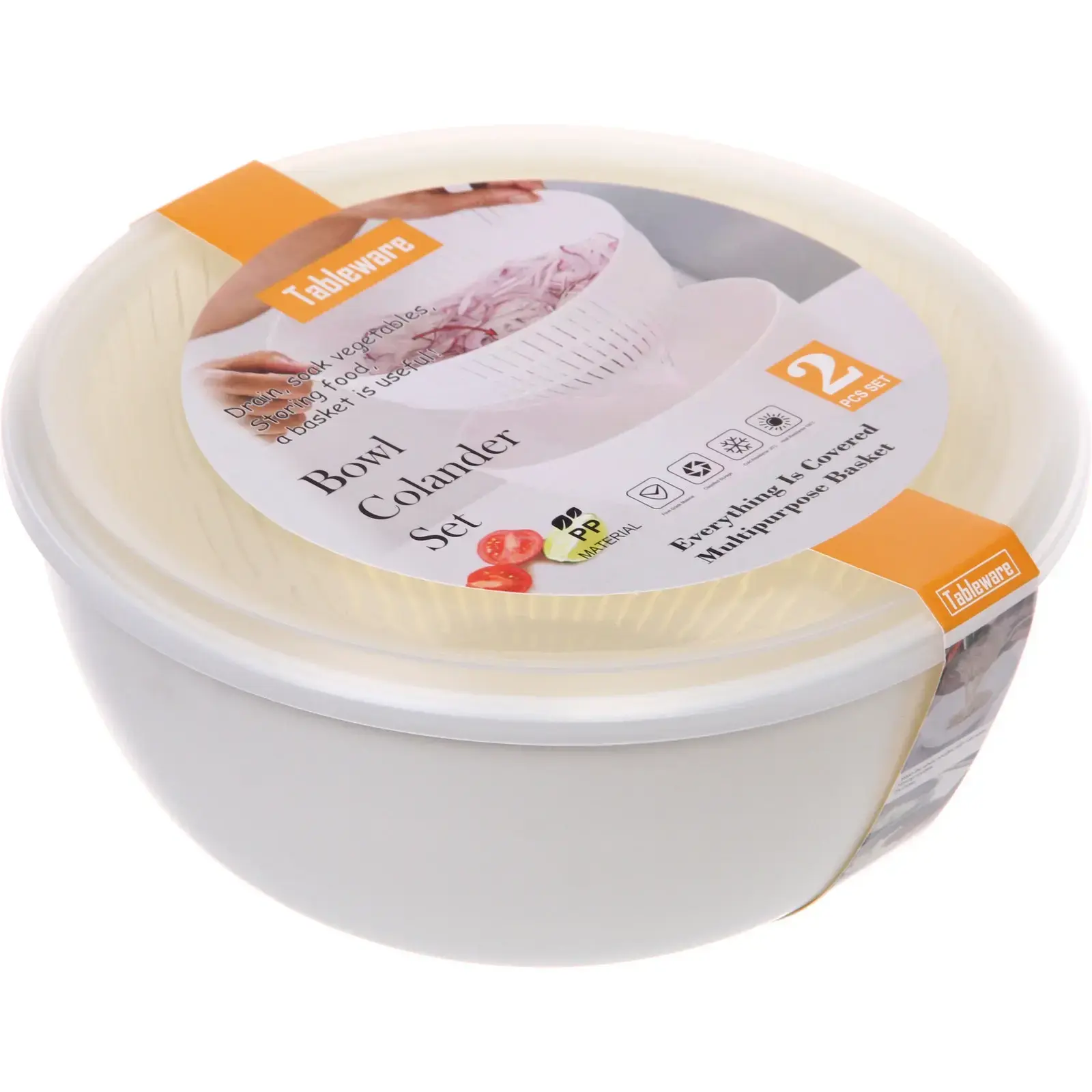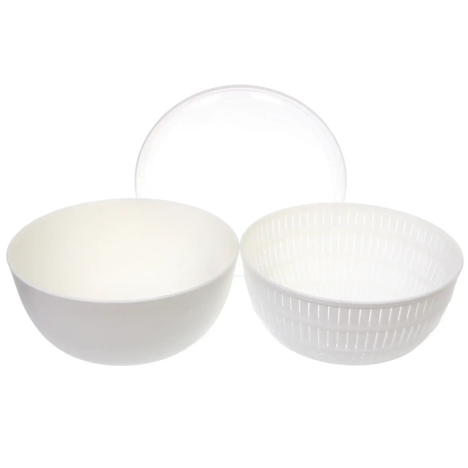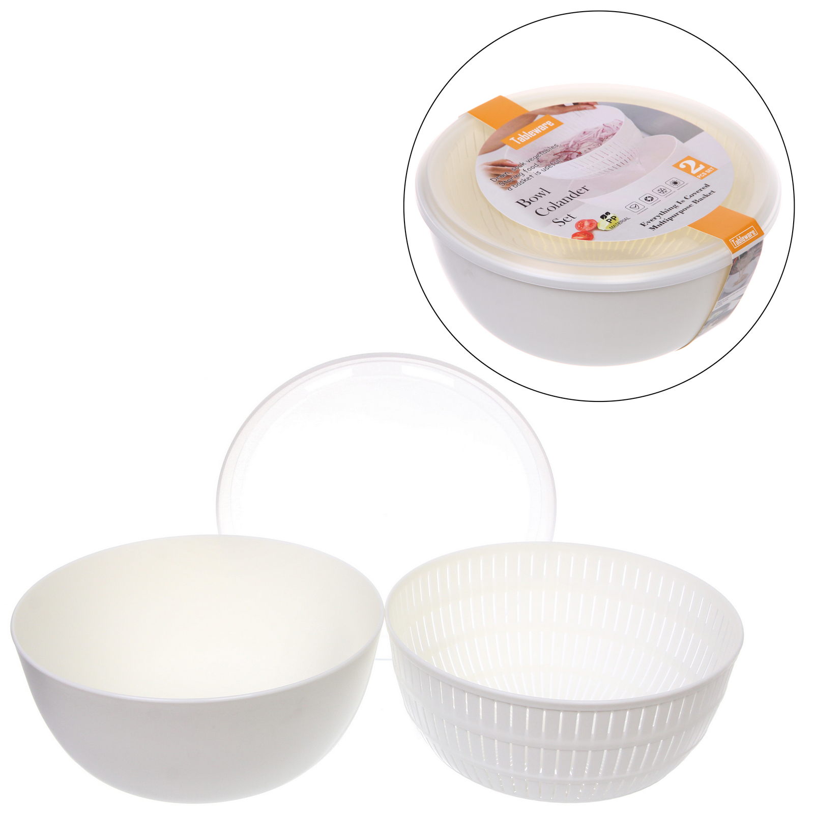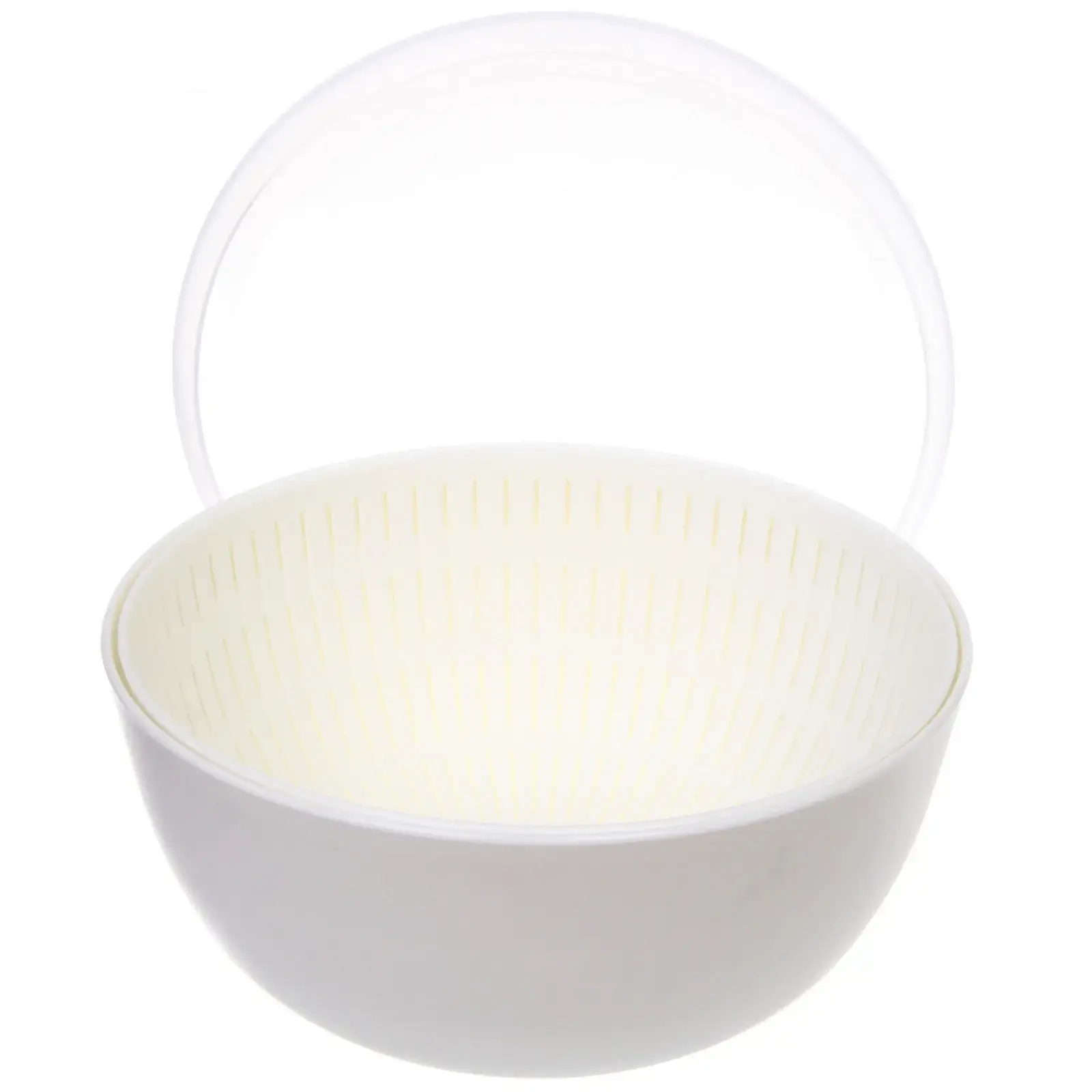 Размеры: дуршлаг диаметром 24см, высота 11см. Цвет: белый. Материал: пищевой пластик (полипропилен).