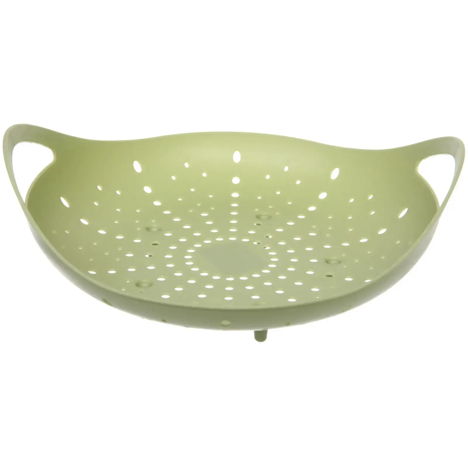 Благодаря продуманной конструкции с ножками, дуршлаг можно разместить над любой емкостью без риска опрокидывания. Светло-зеленый цвет добавляет свежести вашей кухонной утвари, а пластиковый материал обеспечивает легкость и прочность изделия.