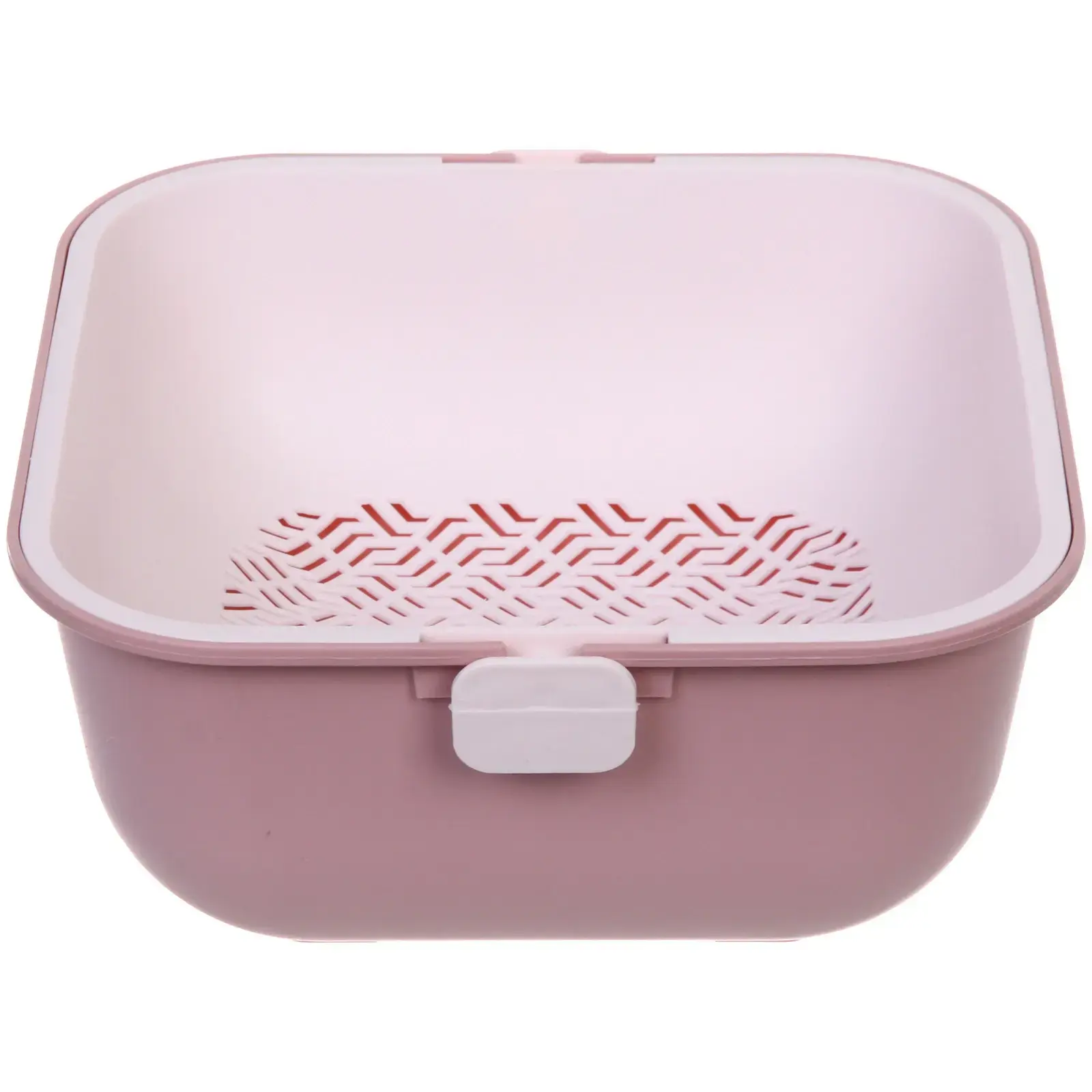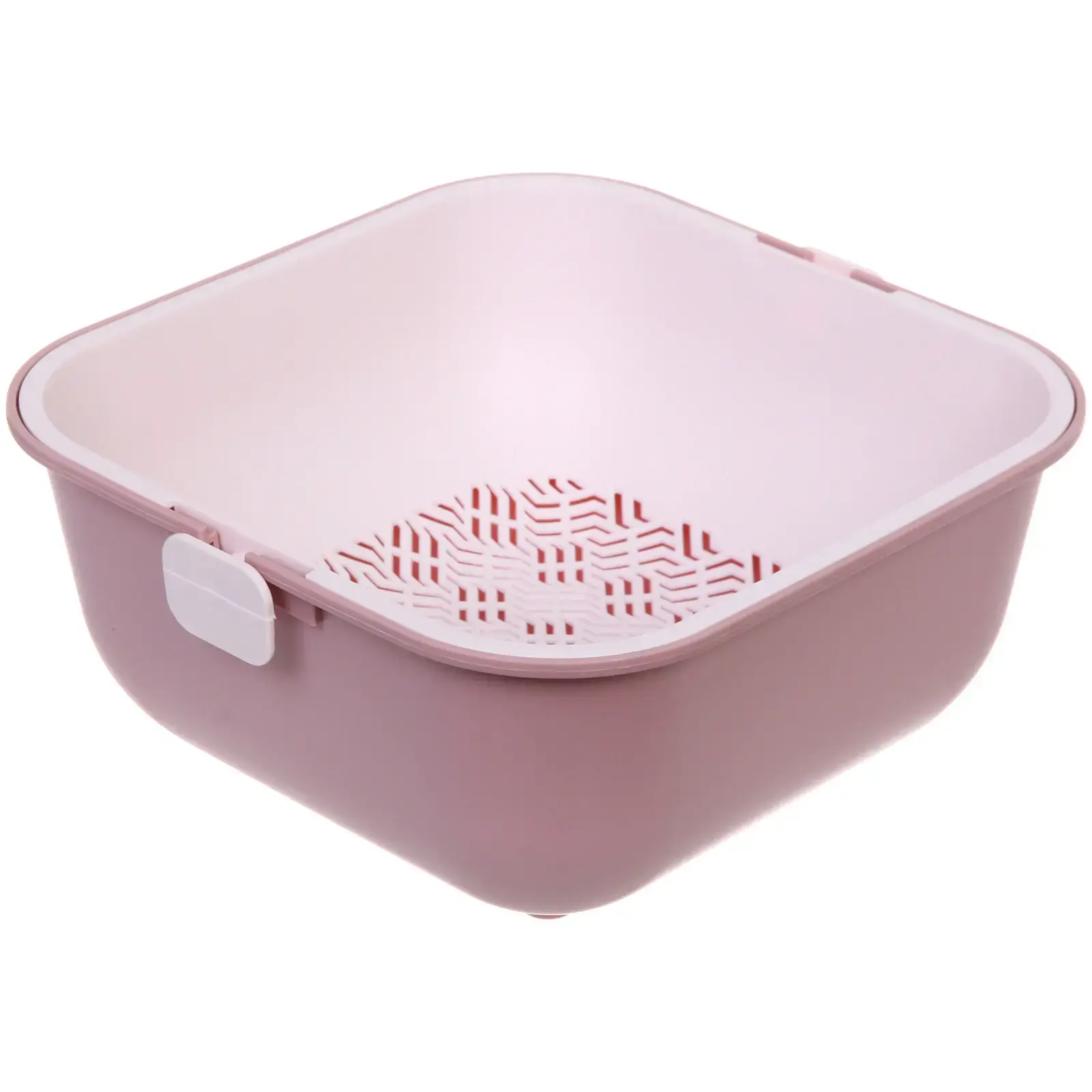 Дуршлаг выполнен из высококачественного пластика, что гарантирует его долговечность. Он имеет закругленные углы и гладкие линии, что делает его не только функциональным, но и эстетически привлекательным. Размеры 23х23х12 см позволяют использовать его для различных задач, а легкость материала обеспечивает комфорт при использовании.