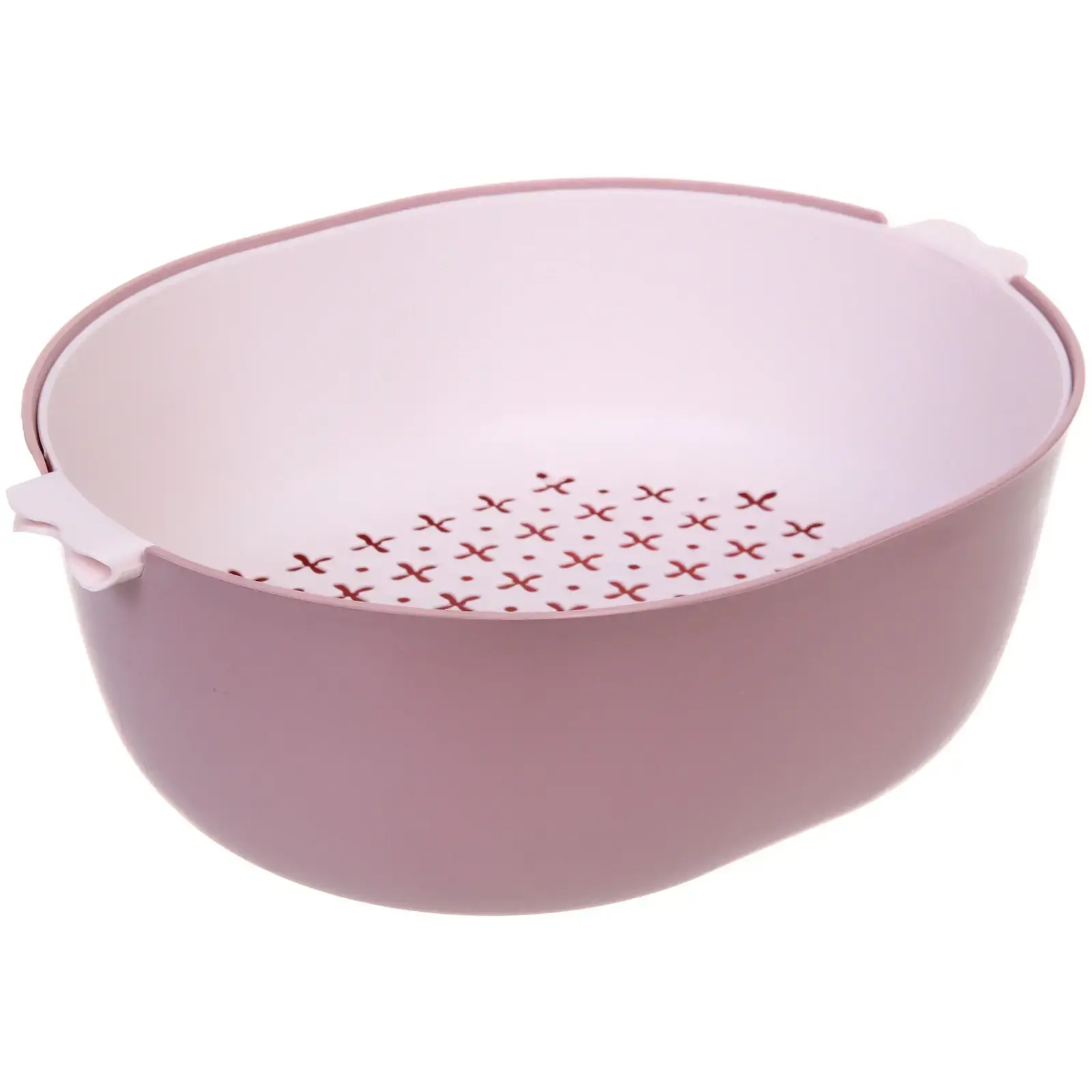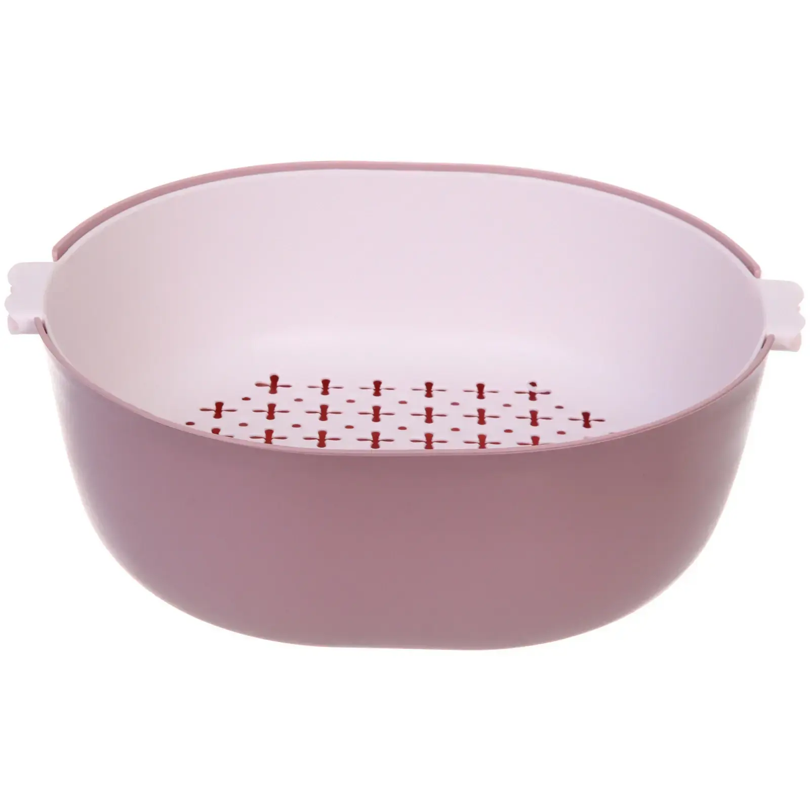 Этот дуршлаг станет незаменимым аксессуаром для каждой хозяйки, обеспечивая комфорт и удобство при мытье овощей, фруктов и ягод. Его стильный дизайн в пыльной розе не только практичен, но и прекрасно дополнит интерьер вашей кухни.