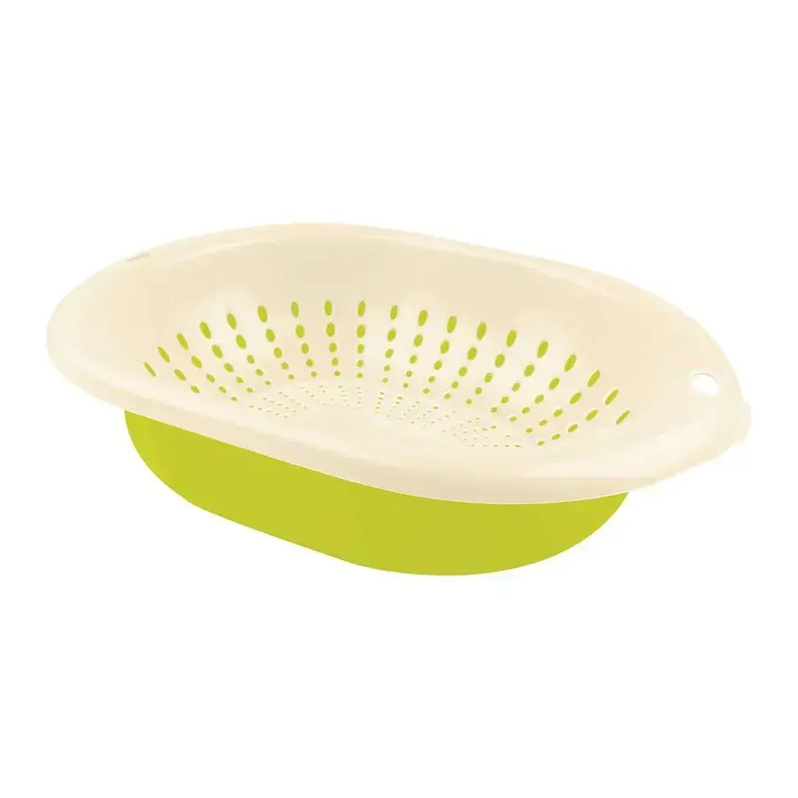 Дуршлаг с миской 3,0 л, пластик, зеленый/белый, удобная ручка для слива и хранения