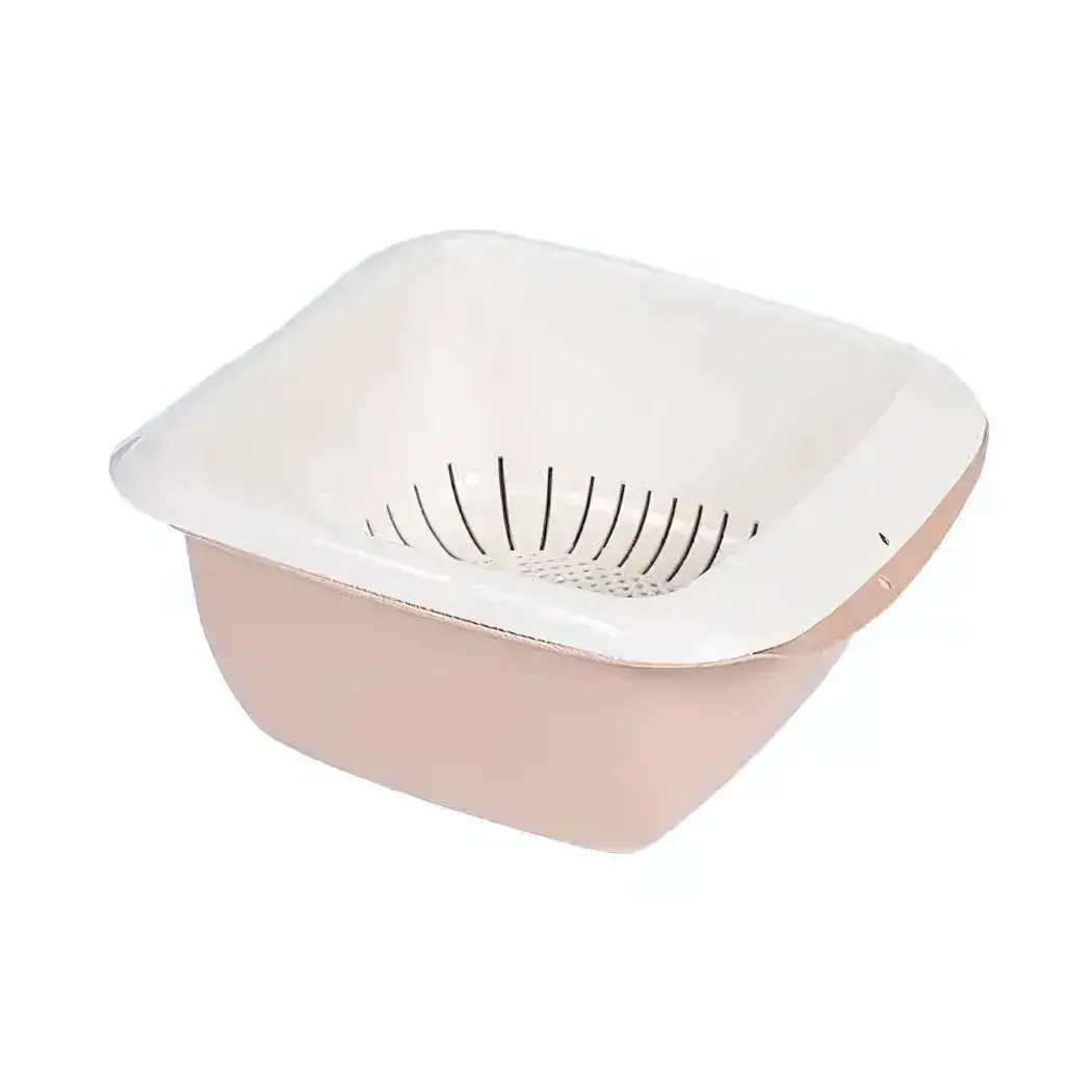 Дуршлаг с миской квадратный 3,5л, пластик, 2 цвета в ассортименте, для овощей и макарон