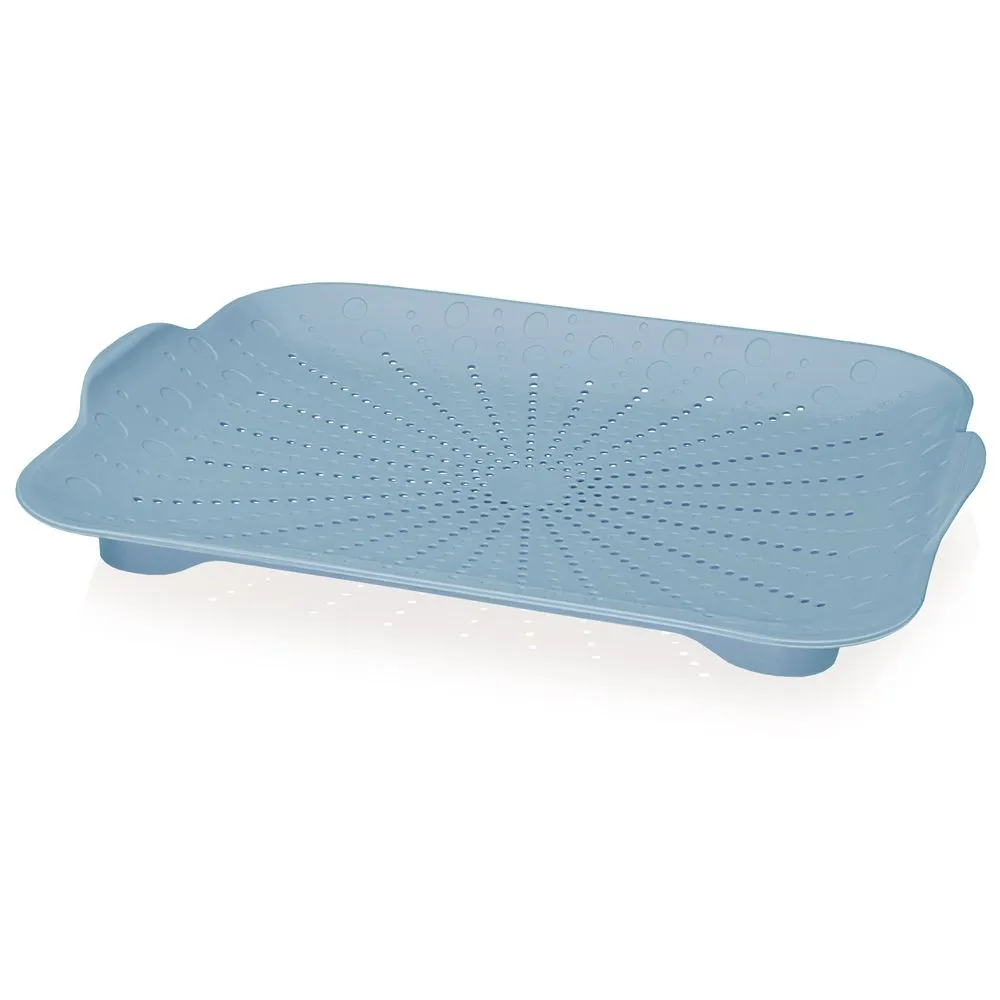 Дуршлаг плоский Slim прямоугольный, серо-голубой, пластик, 2 ручки, для макарон и овощей