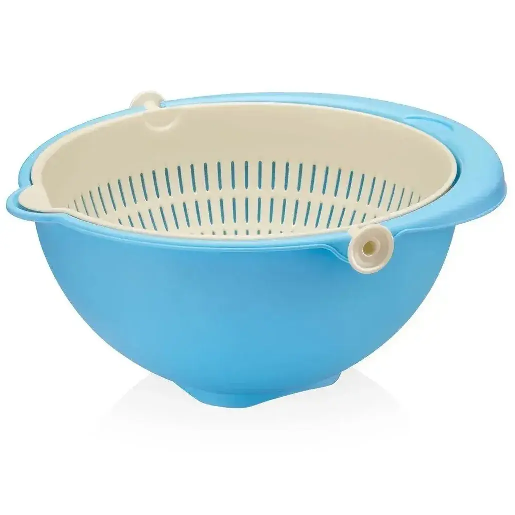 Дуршлаг Twist большой, цвет голубой/слоновая кость, пластиковый
