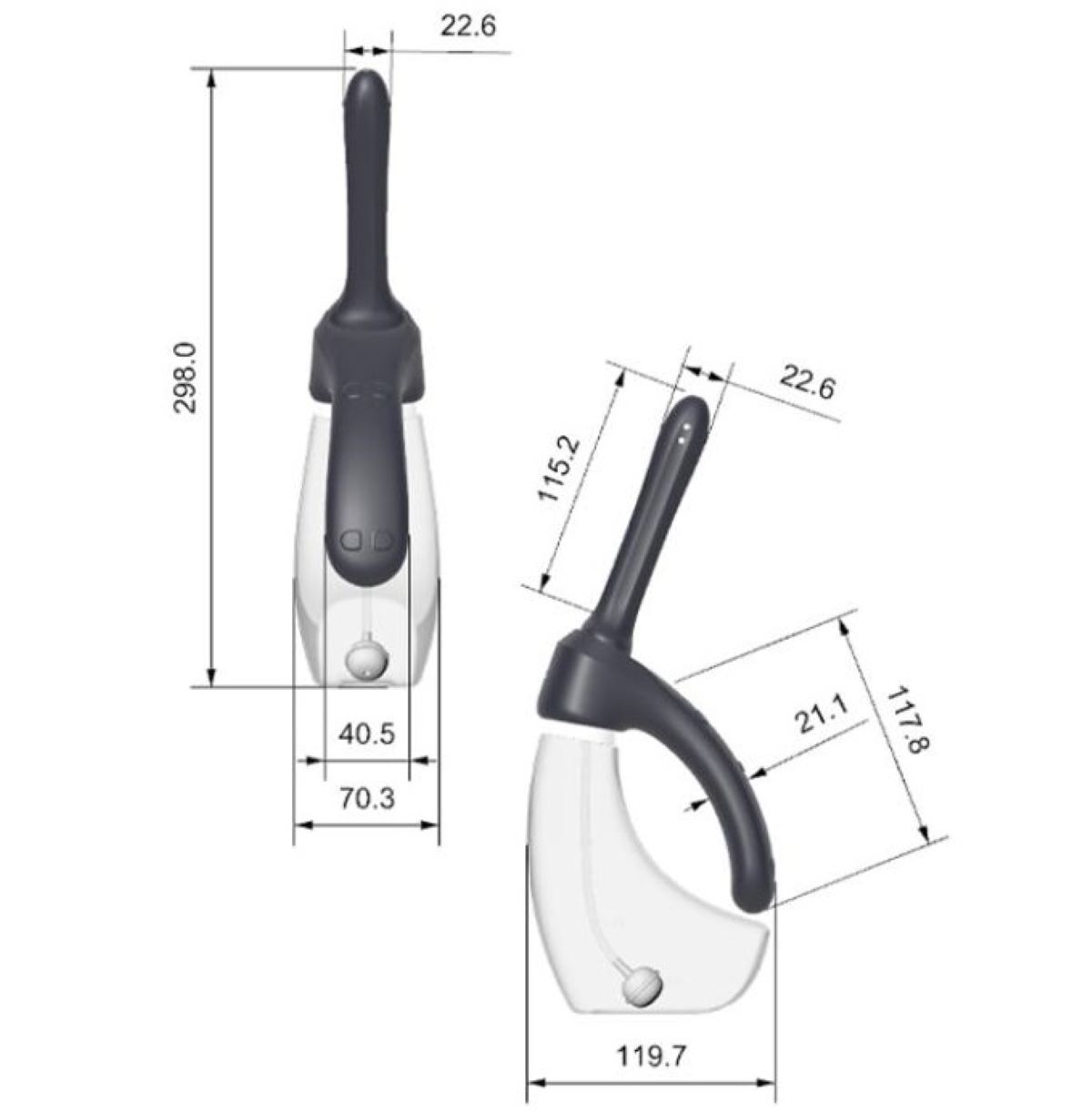 Размеры устройства: длина 29,8 см, длина насадки 11,5 см, диаметр 2,2 см. Для достижения наилучших результатов рекомендуется использовать очищенную воду, так как обычная вода из-под крана может навредить микрофлоре. Душ также водонепроницаем, что позволяет использовать его в ванной без опасений. Не забудьте дополнить использование душа смазкой на водной основе для максимального комфорта.