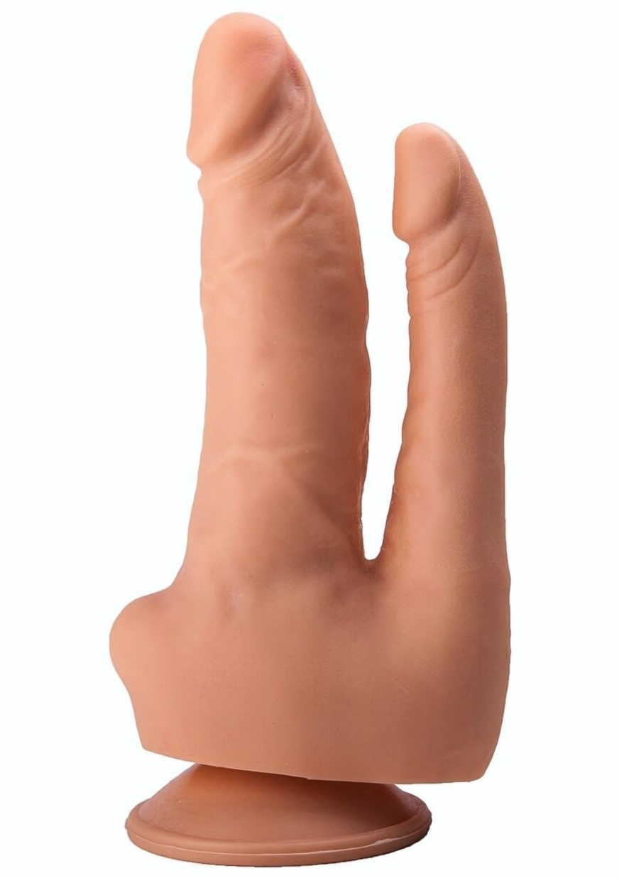 Двойной фаллоимитатор с присоской, 16,5 см, телесный, ПВХ – синхронная стимуляция