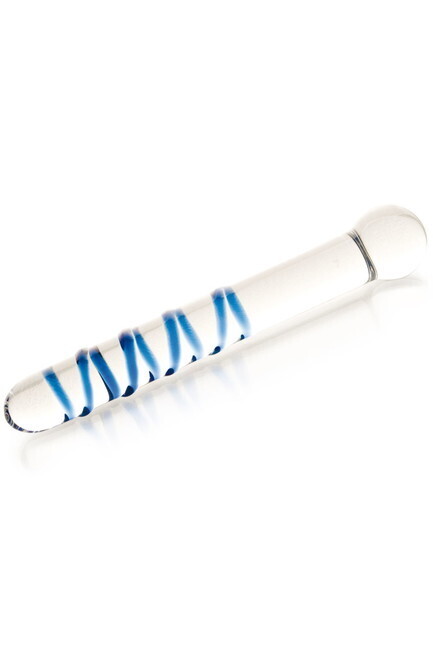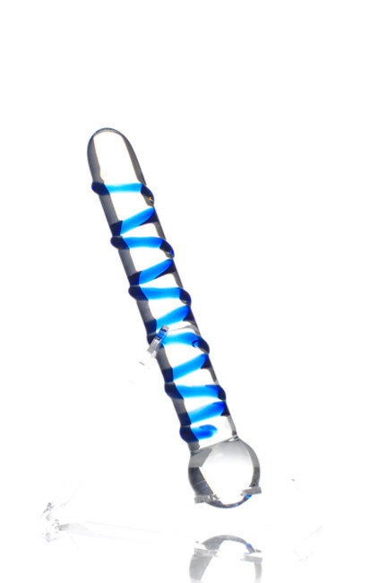 Стимулятор из закаленного стекла «SEXUS GLASS», двойной дизайн, прозрачный с синим, 20,5 см, бархатный мешочек