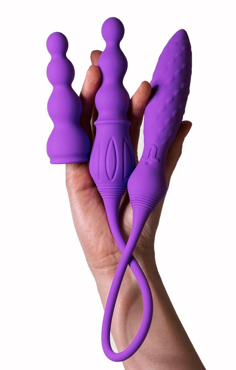 В комплект входит сам вибромассажер, две дополнительные насадки разной формы, пульт дистанционного управления с интуитивными кнопками, USB-кабель для зарядки и стильный атласный мешочек для хранения. Мешочек не только защищает изделие от пыли, но и обеспечивает дискретное хранение. Все элементы выполнены в гармоничном лиловом цвете, создающем эстетичное и привлекательное впечатление.