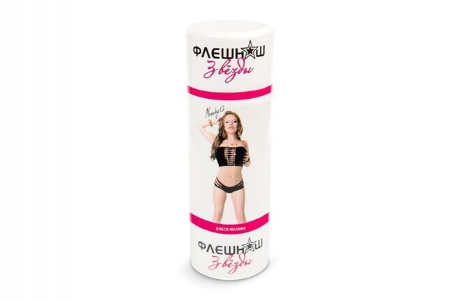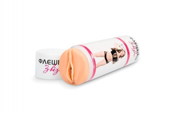 Мастурбатор двухсторонний 'ФлешНаш' с автографом Олеси Малибу, БИО-кожа, 22х8 см, телесный