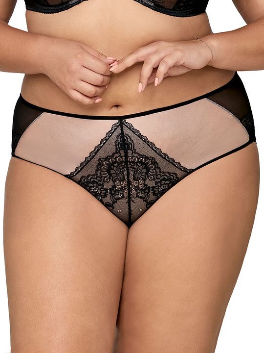 Черные трусики-слипы размера L созданы для тех, кто ценит стиль и удобство. Модель из кружева и сетки подчеркнет вашу женственность, а мягкая ластовица из натурального хлопка обеспечит комфорт в течение дня.