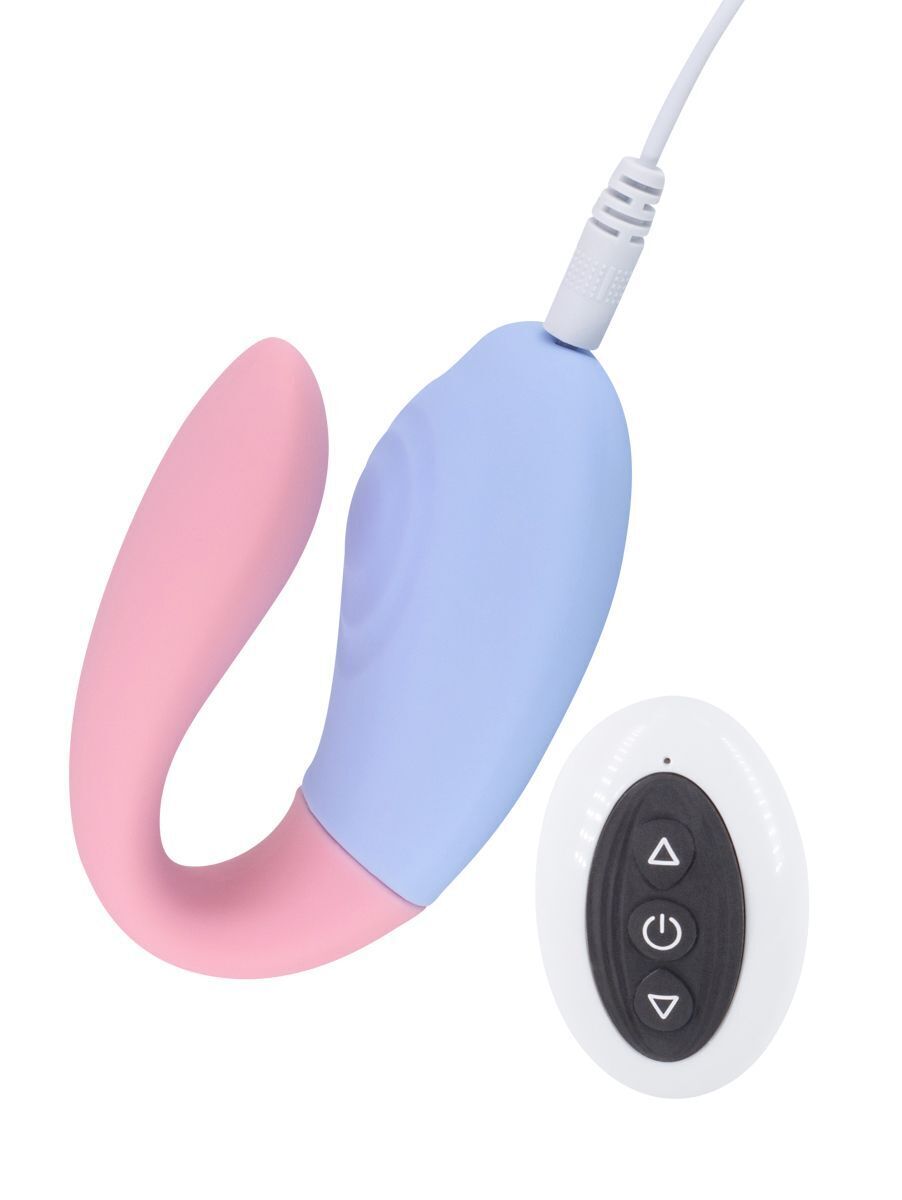 Вибростимулятор для пар с синхронной стимуляцией, 11 режимов, пульт ДУ, USB-зарядка, силикон, голубый/розовый