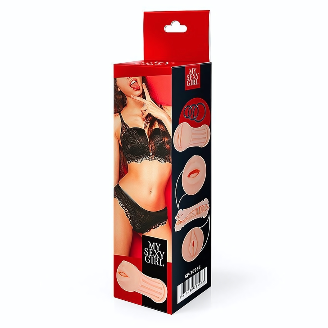 Мастурбатор двусторонний «MY SEXY GIRL» с эрекционными кольцами, TPR, телесный, 3/4/5 см