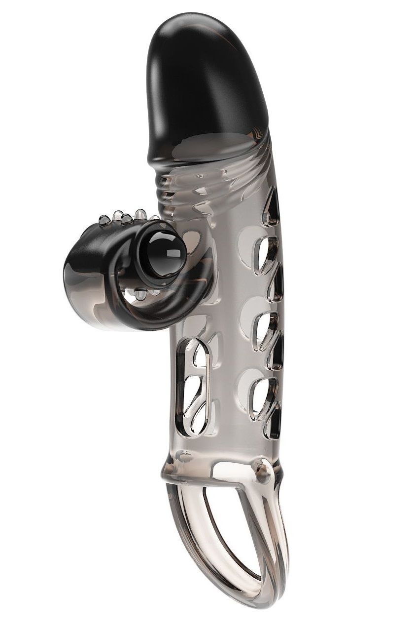 Вибронасадка с вибрацией «Mind-blowing Miracles», TPE, дымчатый, 20 см, 4.2 см, удобная фиксация, батарейки в комплекте