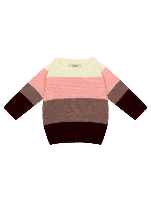 Джемпер для девочки, полосатый, розовый/кремовый/коричневый, хлопок 100%, р.86-92