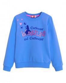 Джемпер для девочки 92 розовый "Curiouser and Curiouser" с принтом бабочек, 100% хлопок