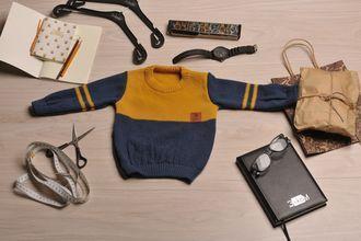 Джемпер для мальчика 116-122, хлопок 100%, цвет джинс/горчица