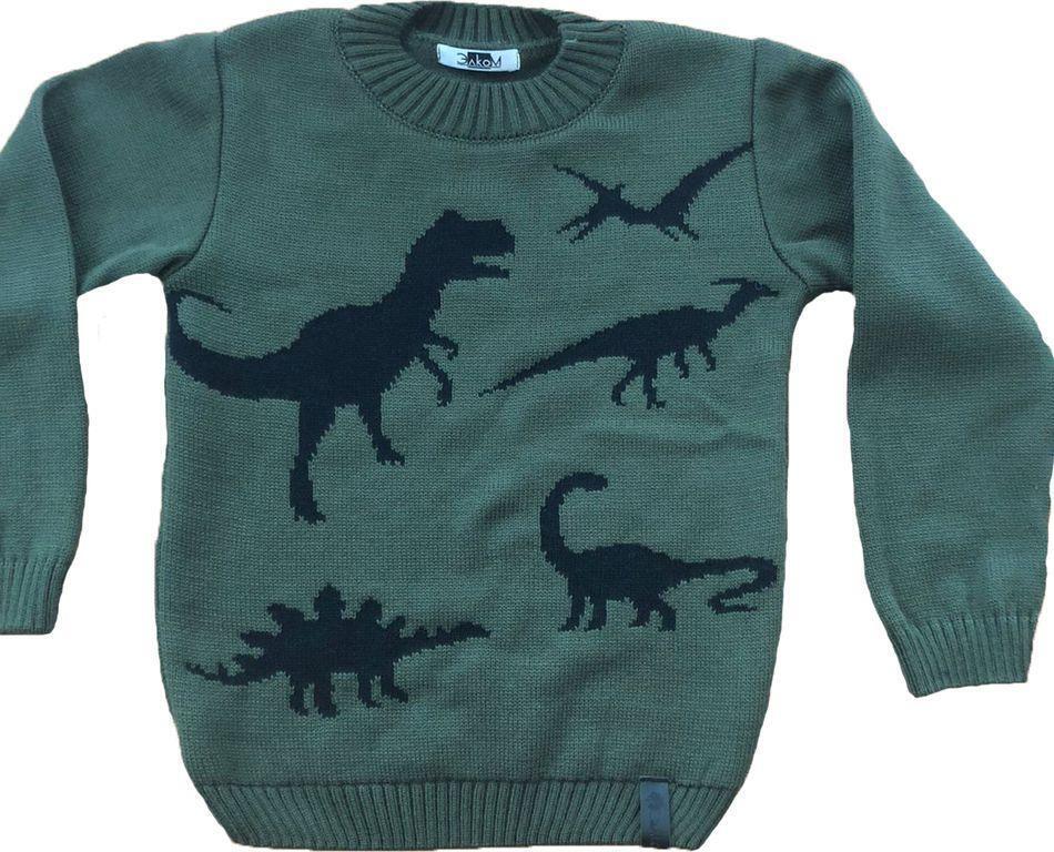 Джемпер для мальчиков "Дино" с динозаврами, тёмно-зелёный, размер 110-116, 50% шерсть/акрил