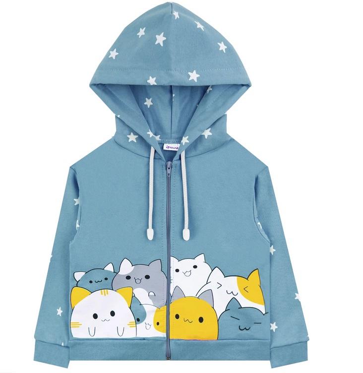 Этот джемпер для мальчиков станет идеальным выбором для повседневной носки. Изготовленный из 100% хлопка, он обеспечивает максимальный комфорт и тепло в холодное время года. Светло-голубой цвет с яркими элементами дизайна, такими как стилизованные кошки и белые звёзды, делает его привлекательным для детей. Капюшон и застёжка на молнии добавляют удобства, а два боковых кармана позволят вашему ребенку хранить мелочи.