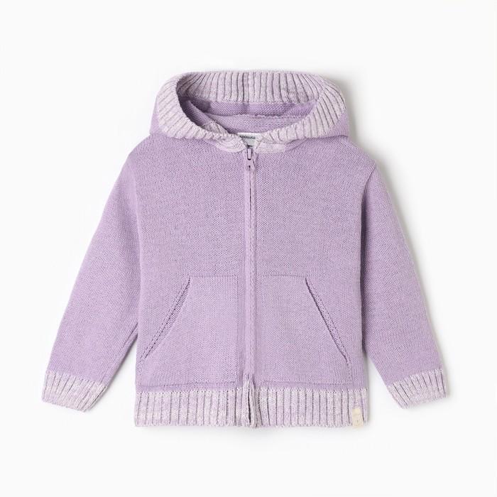 Джемпер вязаный на молнии для девочек, р.68-74, лаванда, хлопок 70%