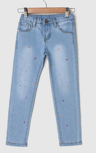 Джинсы для девочки Minaku с вышивкой "Разноцветные сердечки", голубые, рост 92-98, удобные