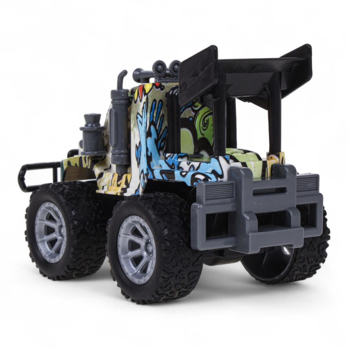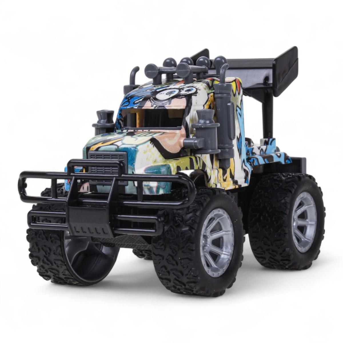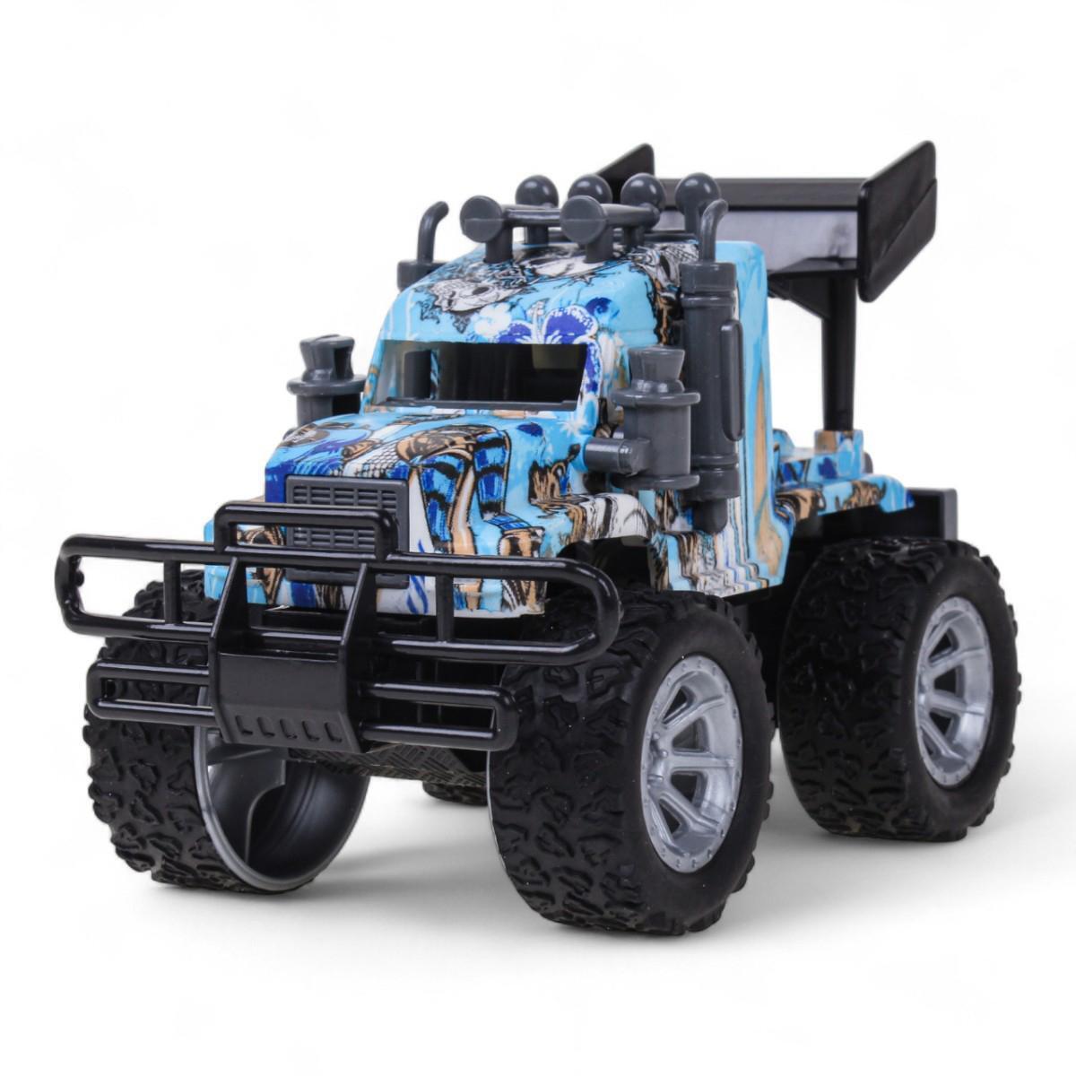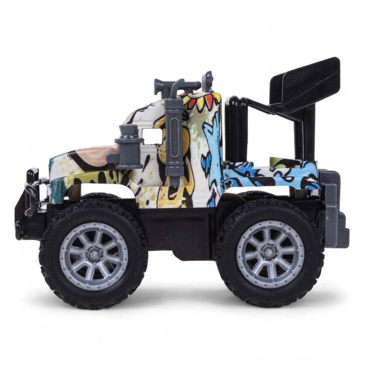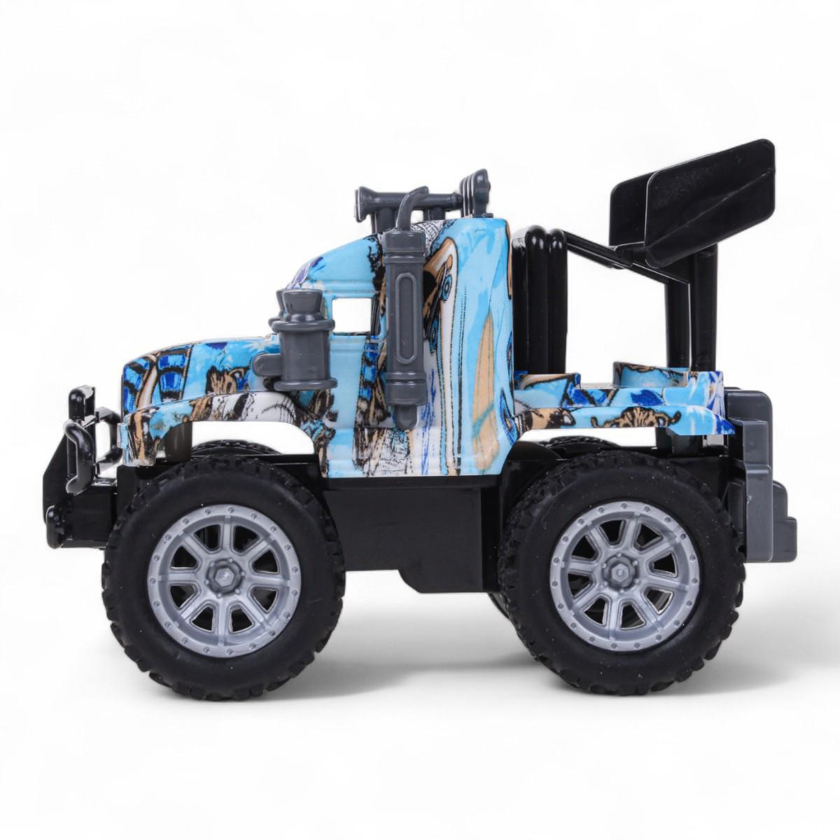 - Реалистичный дизайн: выразительные детали кузова, крупные протекторные колёса и декоративный бампер создают эффект настоящего внедорожника.