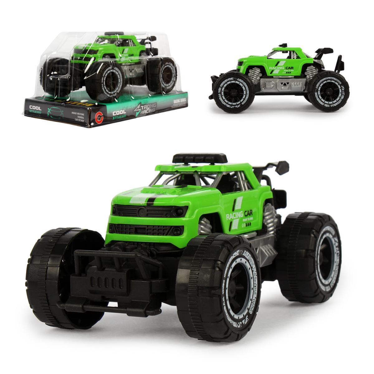 Игрушка подходит для детей от 3 лет и старше, устойчивая к активной игре благодаря прочному пластику и крупным колесам с рифлением, обеспечивающим отличное сцепление. Яркий зеленый цвет и реалистичный дизайн в стиле внедорожника делают машину привлекательной и вызывают желание играть часами.
