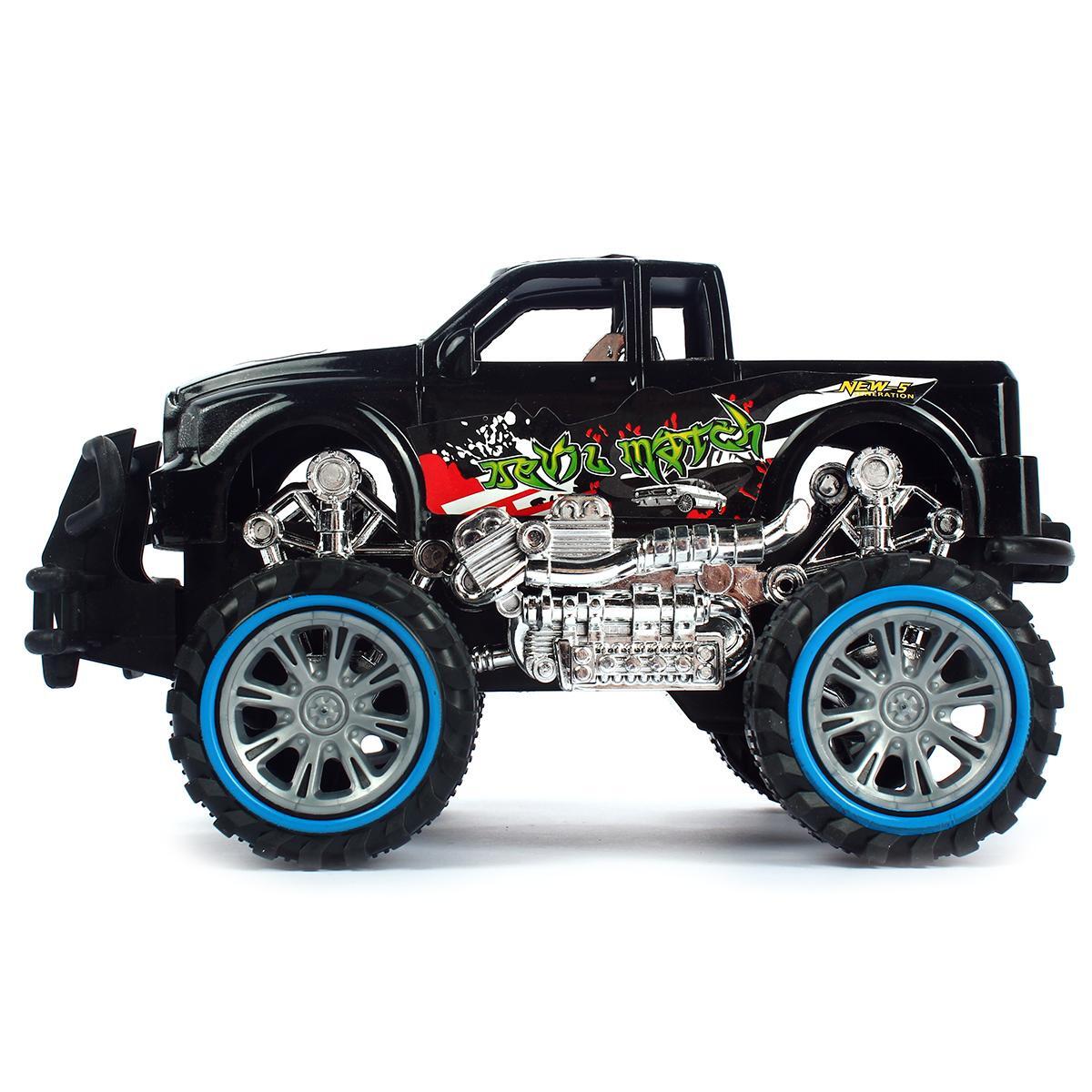 Почему стоит выбрать именно этот джип? Во-первых, его стильный черный цвет с яркими графическими элементами привлекает внимание и делает игрушку визуально привлекательной. Во-вторых, большие резиновые колеса обеспечивают отличное сцепление с поверхностью, что позволяет джипу легко передвигаться по различным покрытиям. В-третьих, инерционный механизм делает игру более динамичной и интересной.