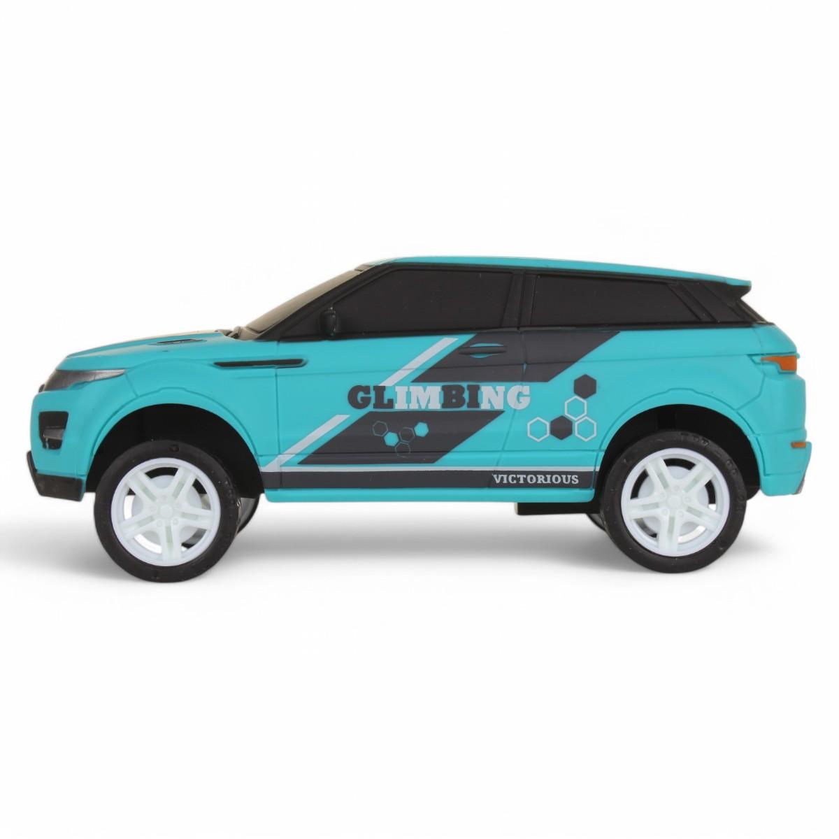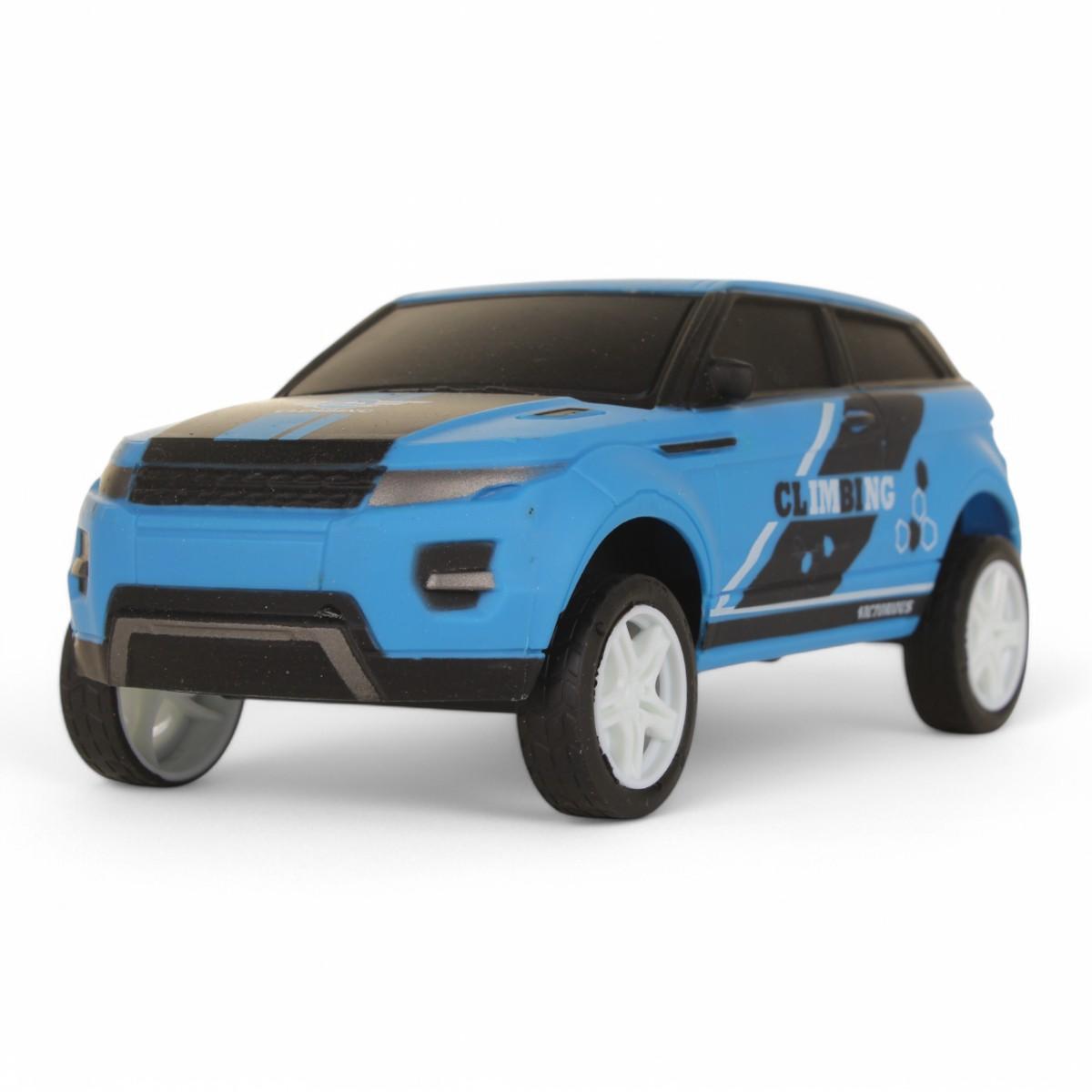 Джип выполнен в голубом цвете с черными и серыми акцентами, что делает его стильным и современным. Он не имеет открывающихся дверей или других функциональных элементов, что делает его простым в использовании. Упаковка также выполнена из безопасных материалов, что позволяет легко увидеть саму игрушку и оценить ее внешний вид перед покупкой.