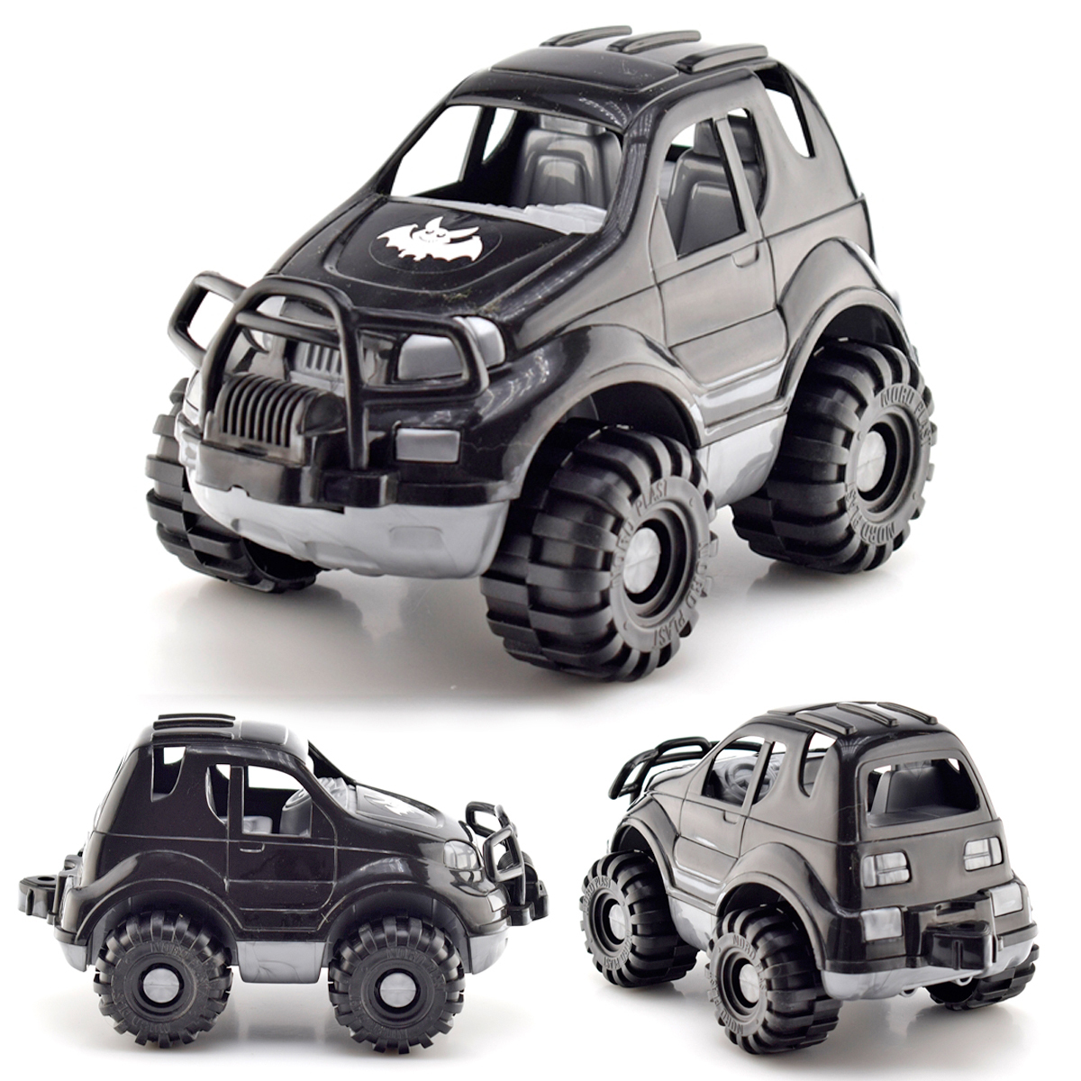 Эта игрушка подходит для групповых игр в детском саду, дома и на улице. Ее размеры — 25 × 14 × 14 см позволяют легко держать машинку в руках, а усиленный бампер и большие колеса обеспечивают хорошую проходимость по различным поверхностям. Джип легко моется и устойчив к выгоранию ярких цветов.