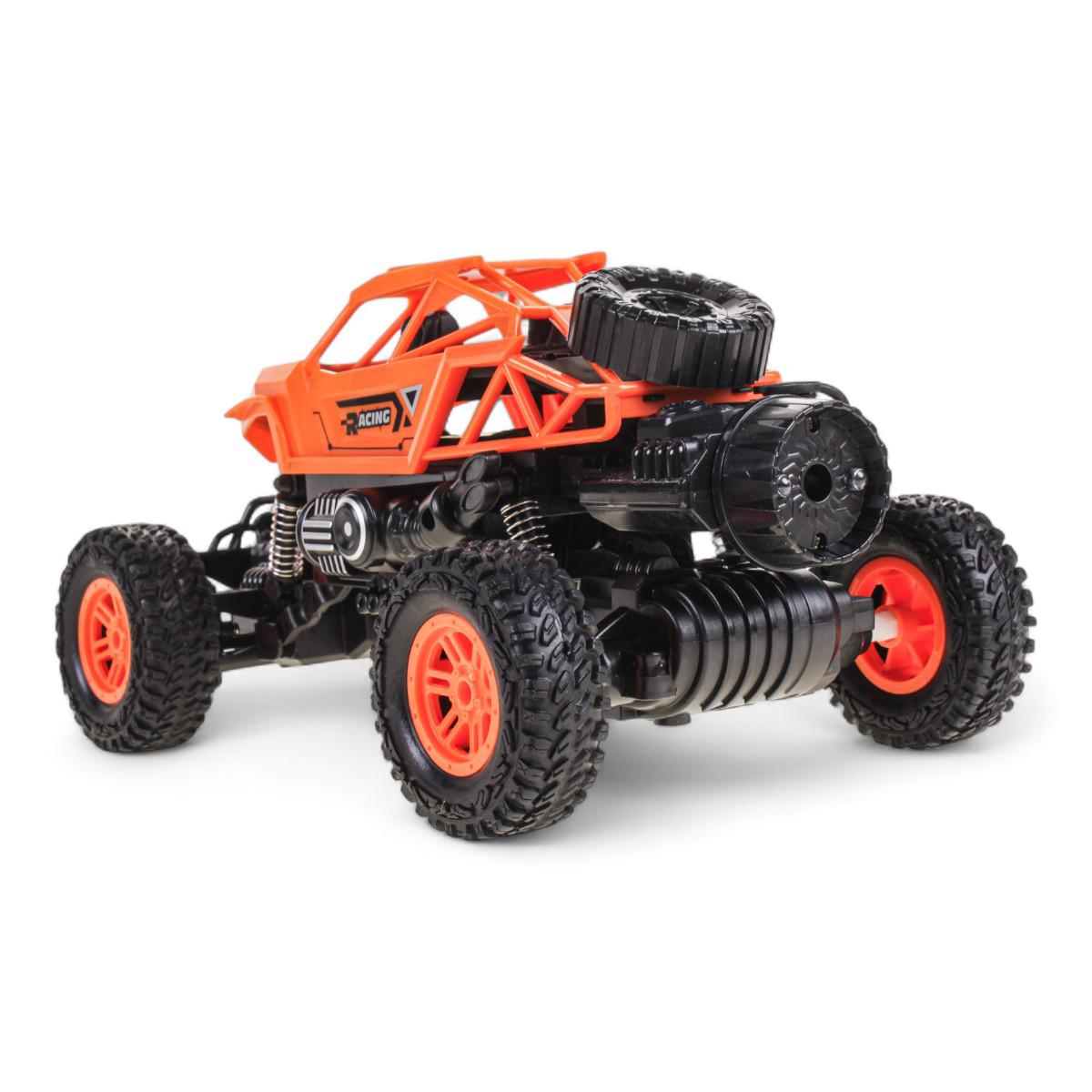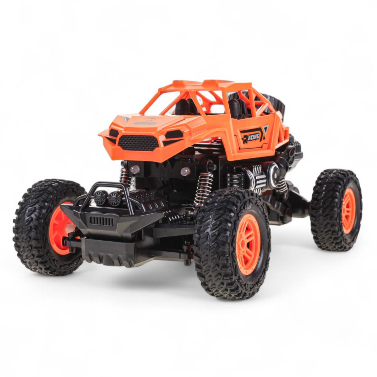 Большие резиновые колеса обеспечивают отличное сцепление с поверхностью, а прочный пластик гарантирует долговечность. В комплект входит USB-провод для зарядки и пульт управления с антенной.