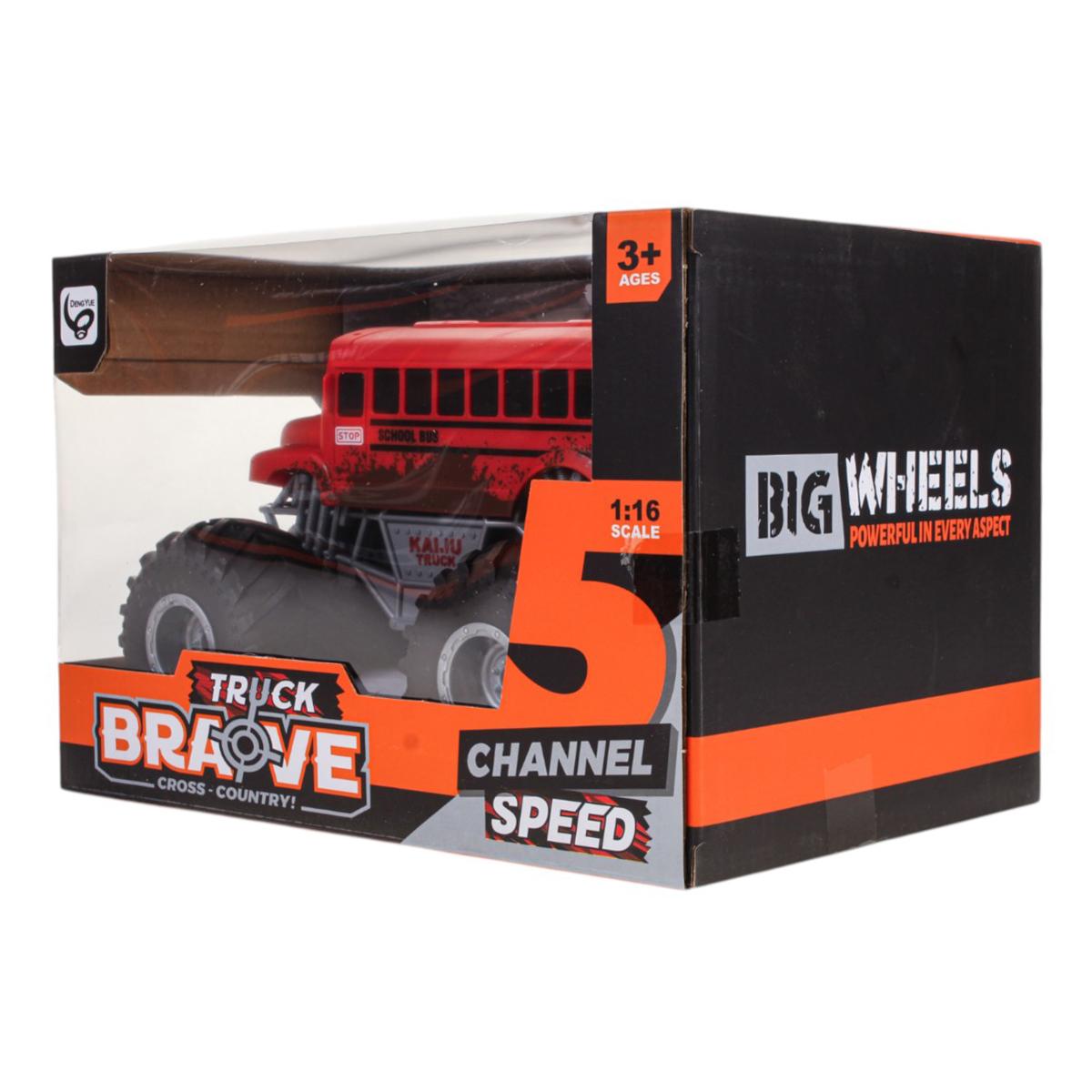 Благодаря внушительным размерам (1:16 масштаб) и крупным колесам, игрушка выглядит эффектно и уверенно справляется с различными поверхностями. Размеры упаковки 25.5 х 17.0 х 16.7 см делают её удобной для хранения и транспортировки.