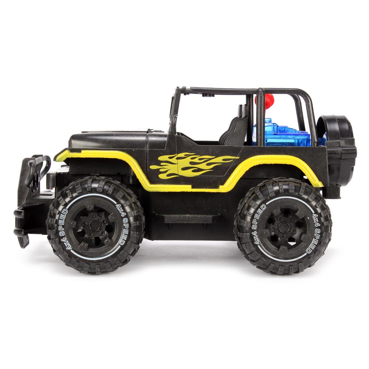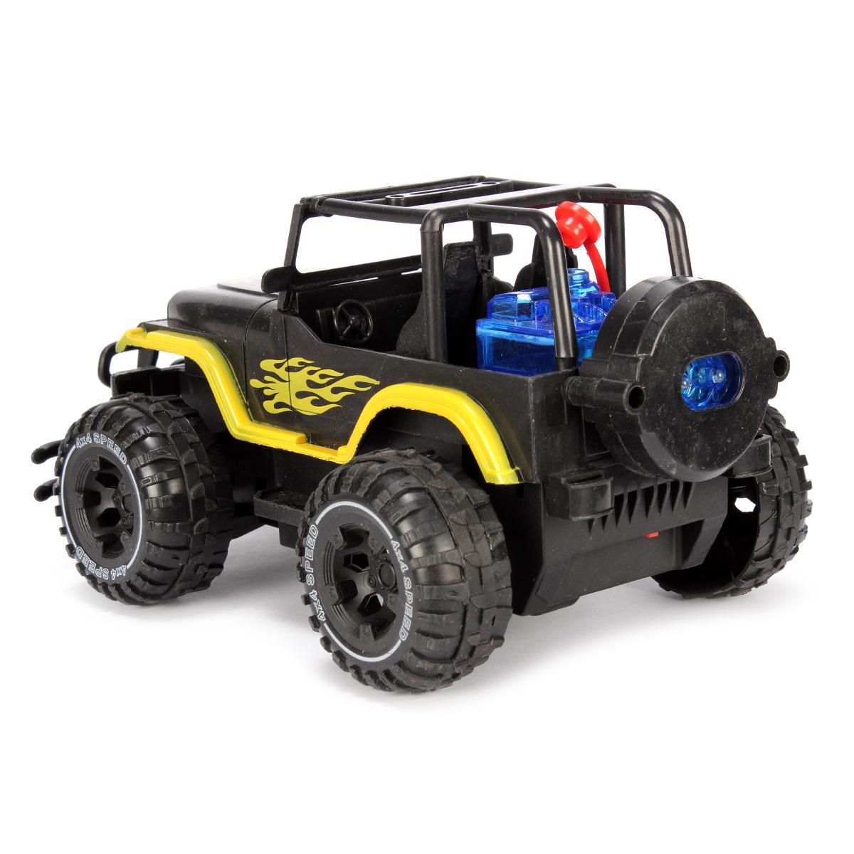 Почему стоит выбрать именно этот джип? Во-первых, он изготовлен из прочного пластика, что обеспечивает долговечность и надежность. Во-вторых, его яркий черный цвет с желтыми огненными элементами привлекает внимание и делает игру более увлекательной. Кроме того, джип оснащен световыми эффектами и функцией туманного распыления, что добавляет реалистичности в игру.