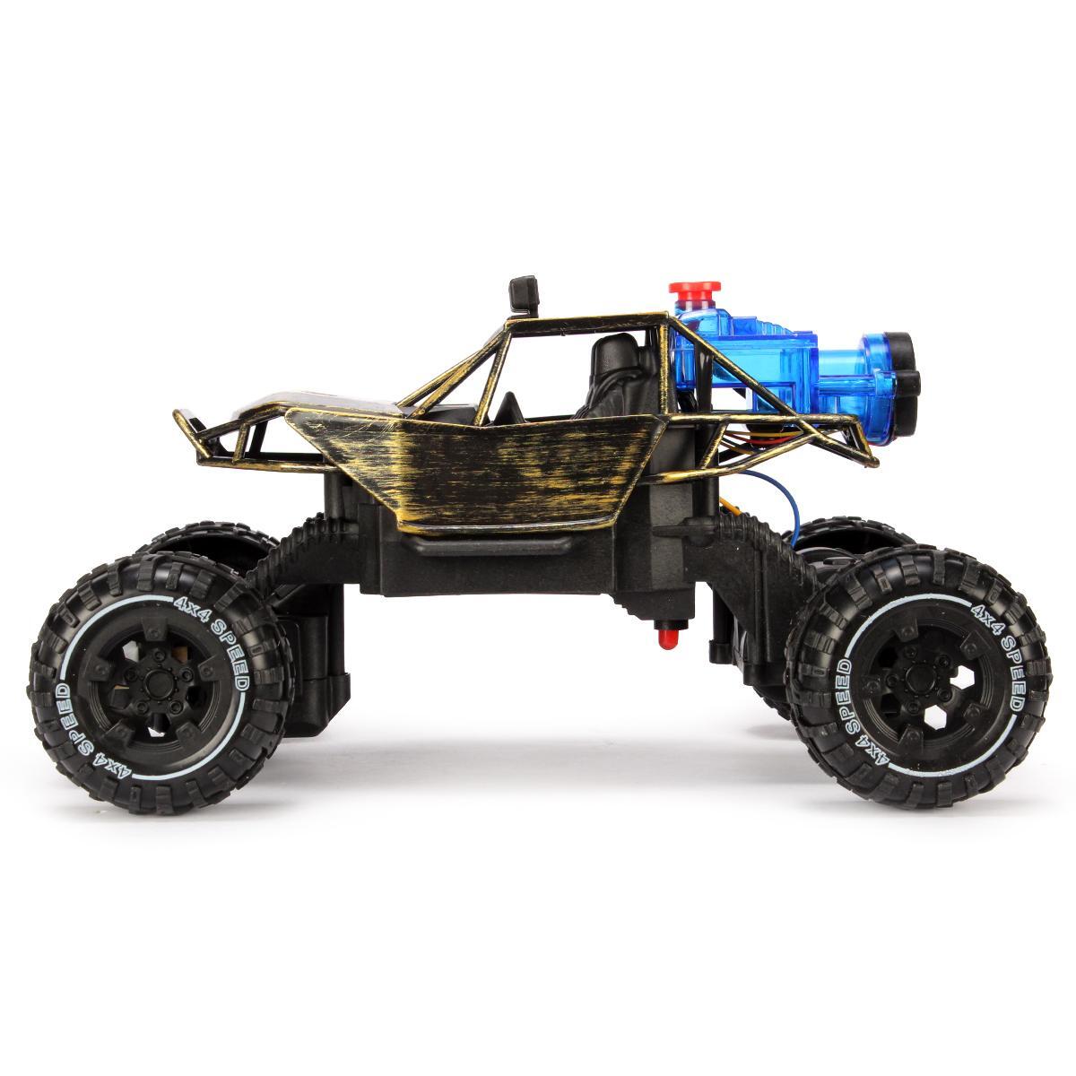 Изготовлен из прочного пластика, устойчивого к ударам и изношенности, что обеспечивает длительный срок службы. Размеры: 22,0 х 13,2 х 11,6 см — компактный и удобный для хранения и переноски. В набор входит один джип и пульт управления, батарейки не входят в комплект.