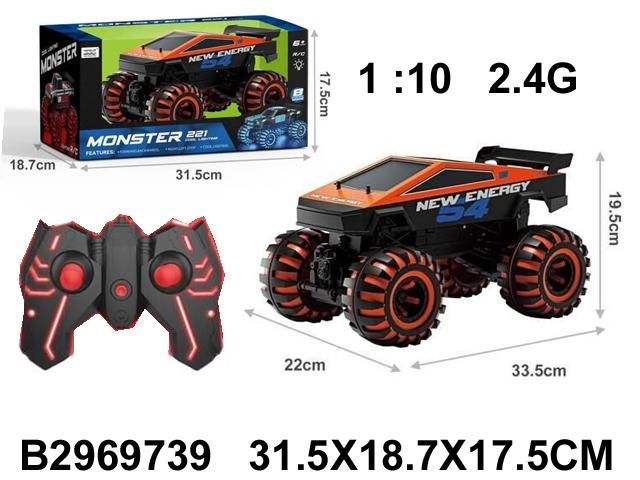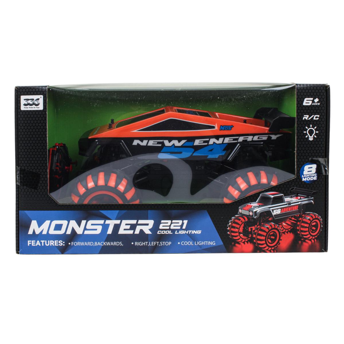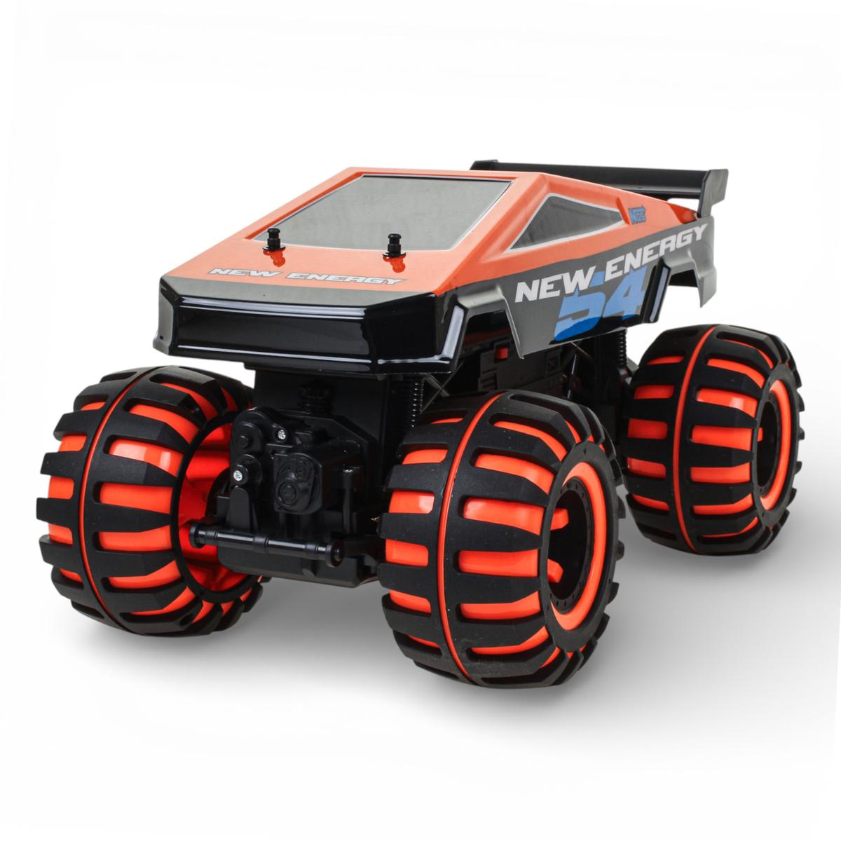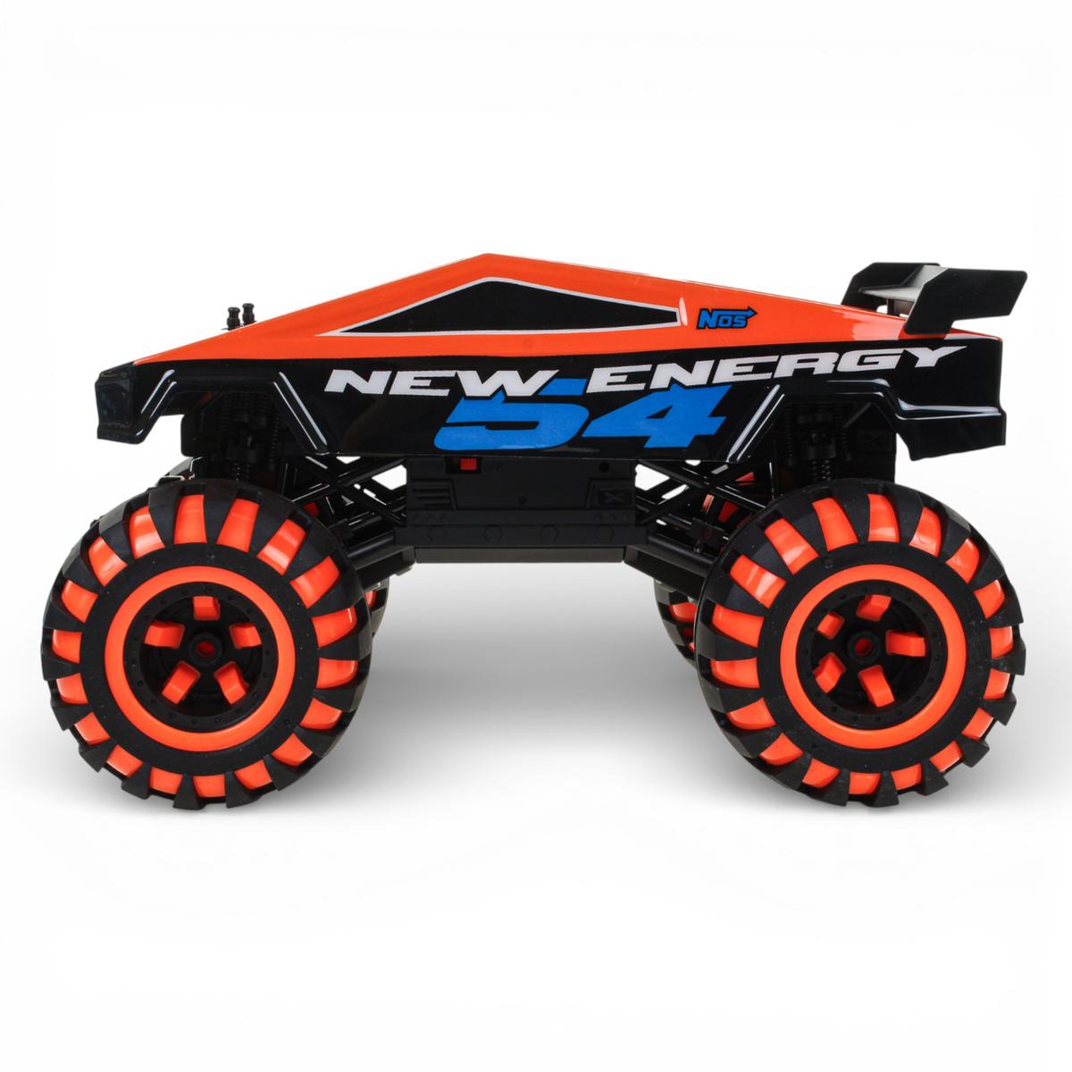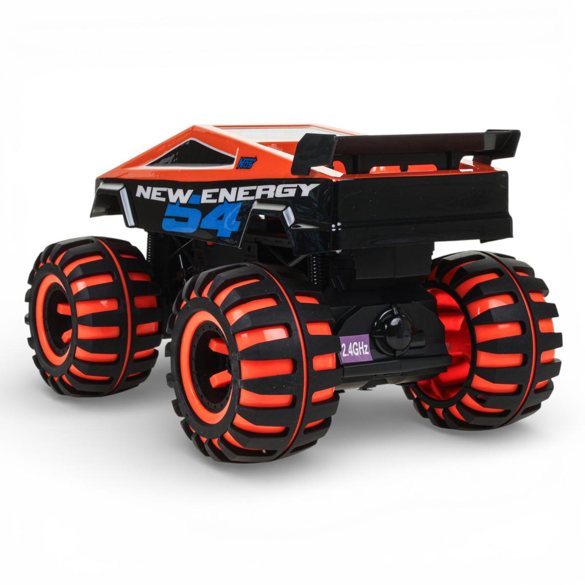 Прочный пластиковый корпус устойчив к ударам во время активных заездов. Большие колеса обеспечивают хорошее сцепление с различными поверхностями, а выразительный дизайн с надписью "NEW ENERGY" и спортивными элементами подчеркивает характер внедорожника. Световые режимы добавляют реалистичности и делают игру особенно эффектной в вечернее время.