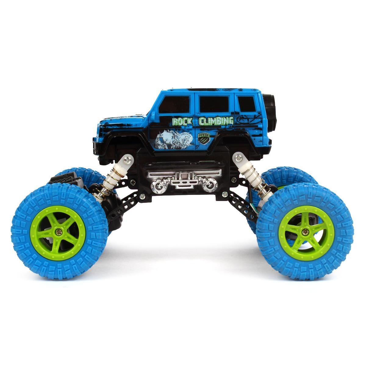 Радиоуправляемый джип «Rock Climbing» с пультом, большие колеса, амортизаторы, USB-зарядка, синий/черный, 12.5х18.5х11см
